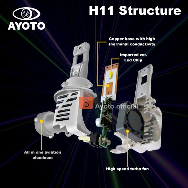 2 PCS (Sepasang) Lampu Led Mobil Utama Kabut Headlamp Foglamp Socket H11 AYOTO Watt35 Single Beam