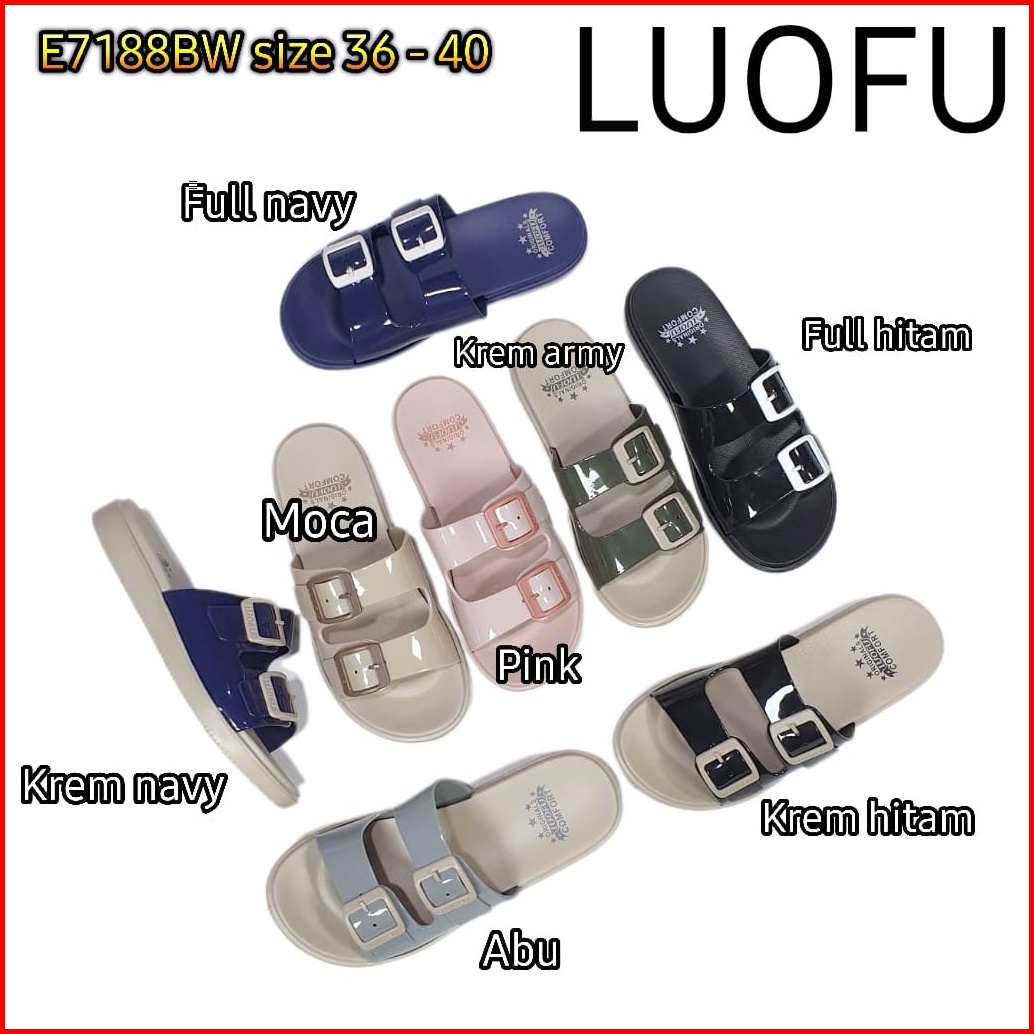 E7188bw Luofu Original Jelly Sandal Karet Empuk Murah Selop Wanita Sendal Cewek Ban 2 Import