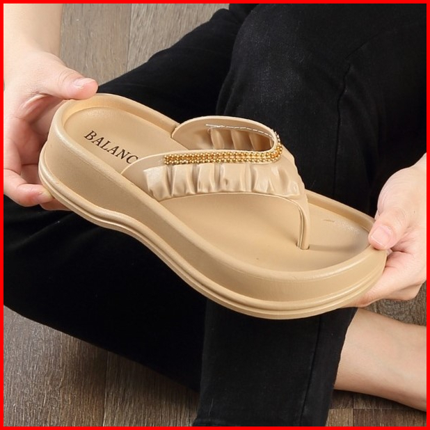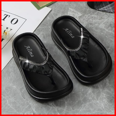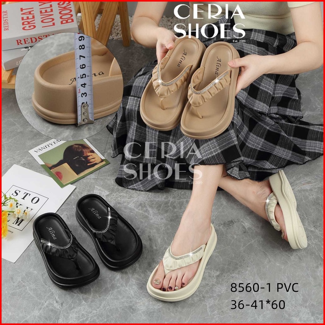 Sandal Jepit Wanita Karet Jelly Motif Silver Lis Import Sol Tebal Empuk Elastis Alina 8560