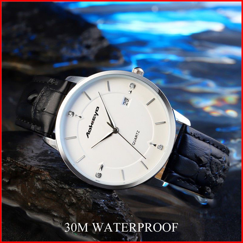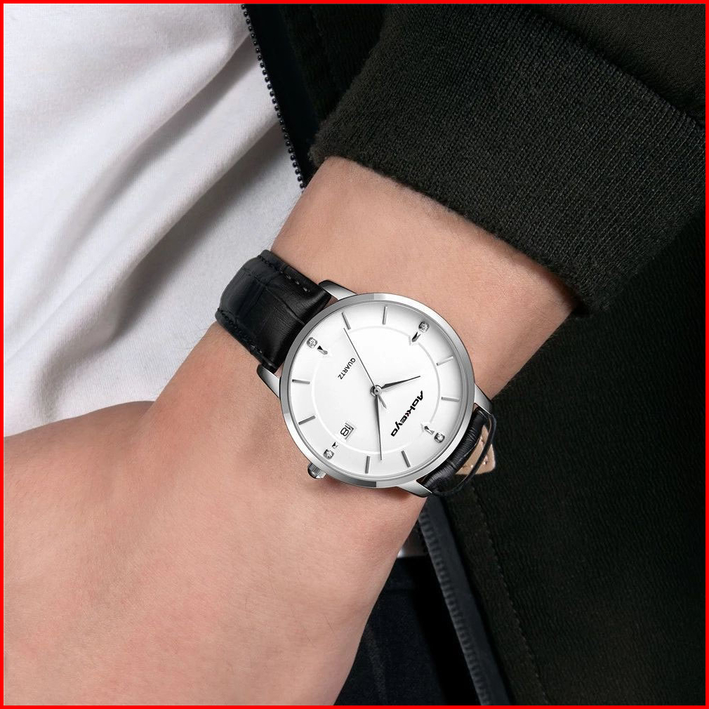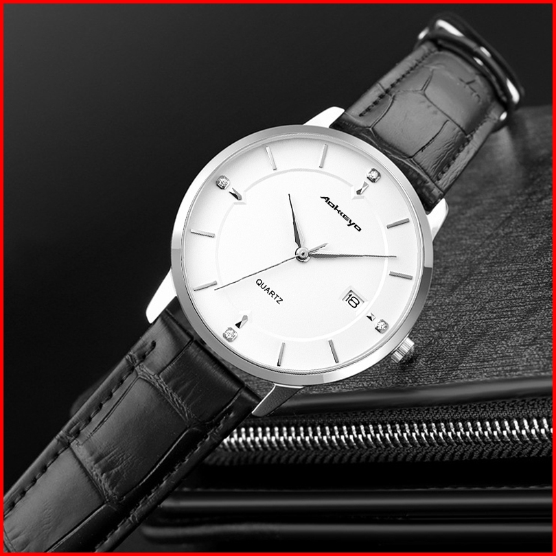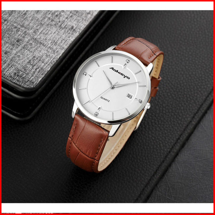 Aokeyo S79 Jam Tangan Pria Kulit Anti Air Original Analog Model Classic Tali Pu Leather Jam Tangan Cowok Free Box Kartu