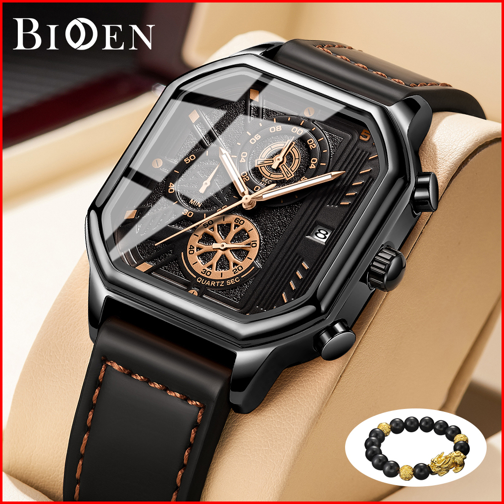 Biden Jam Tangan Pria Anti Air Original Kalender Kronograf Multifungsi Jam Tangan Cowok Olahraga Tali Kulit