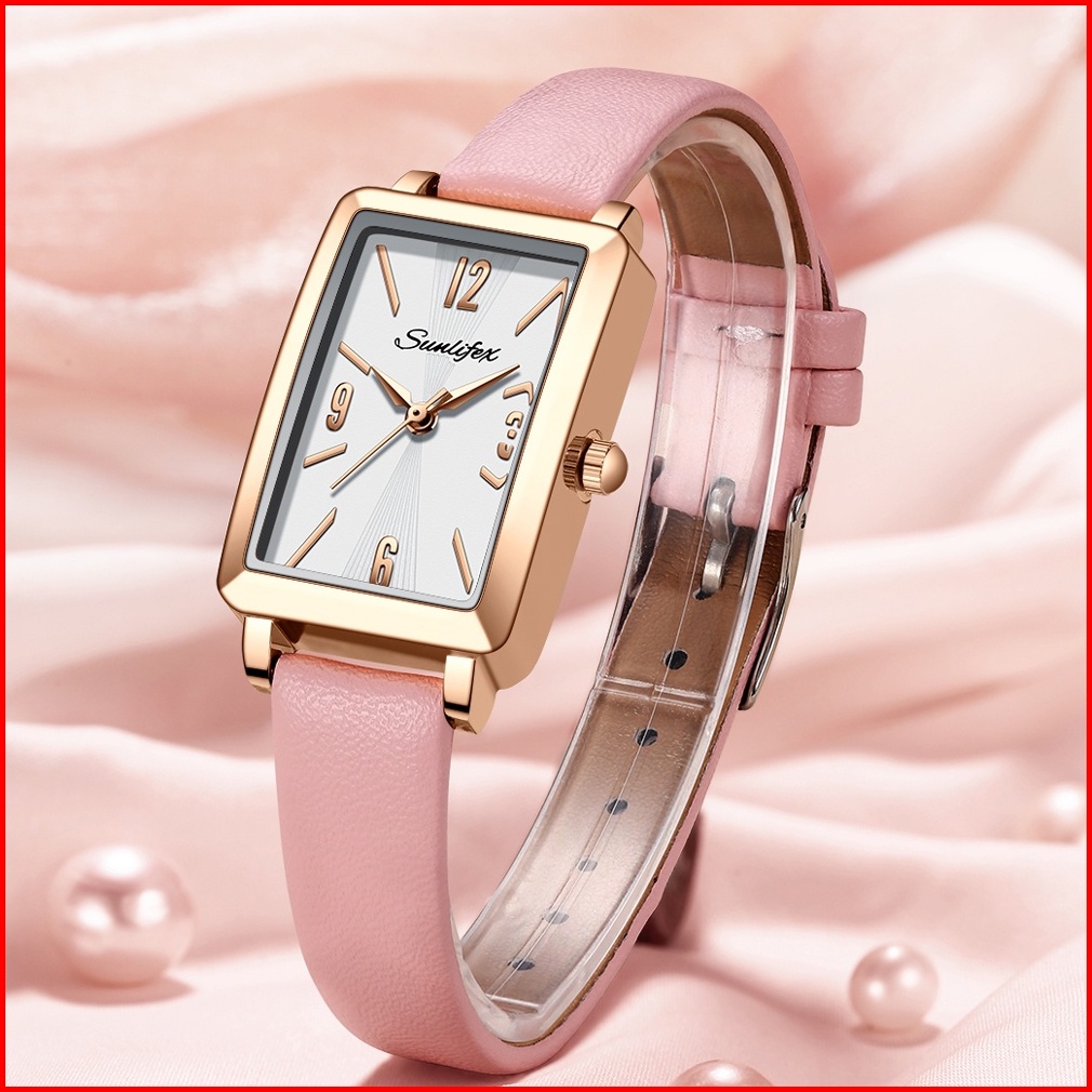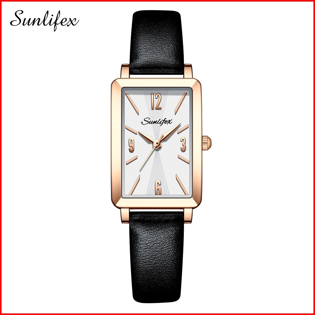 Sunlifex Jam Tangan Wanita 8002 Original Tali Kulit Mode Anggun Jam Wanita Kuarsa Jam Tangan Cewek