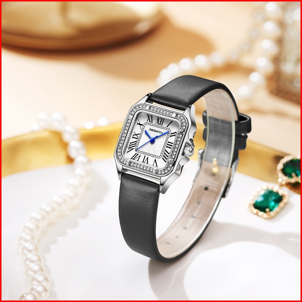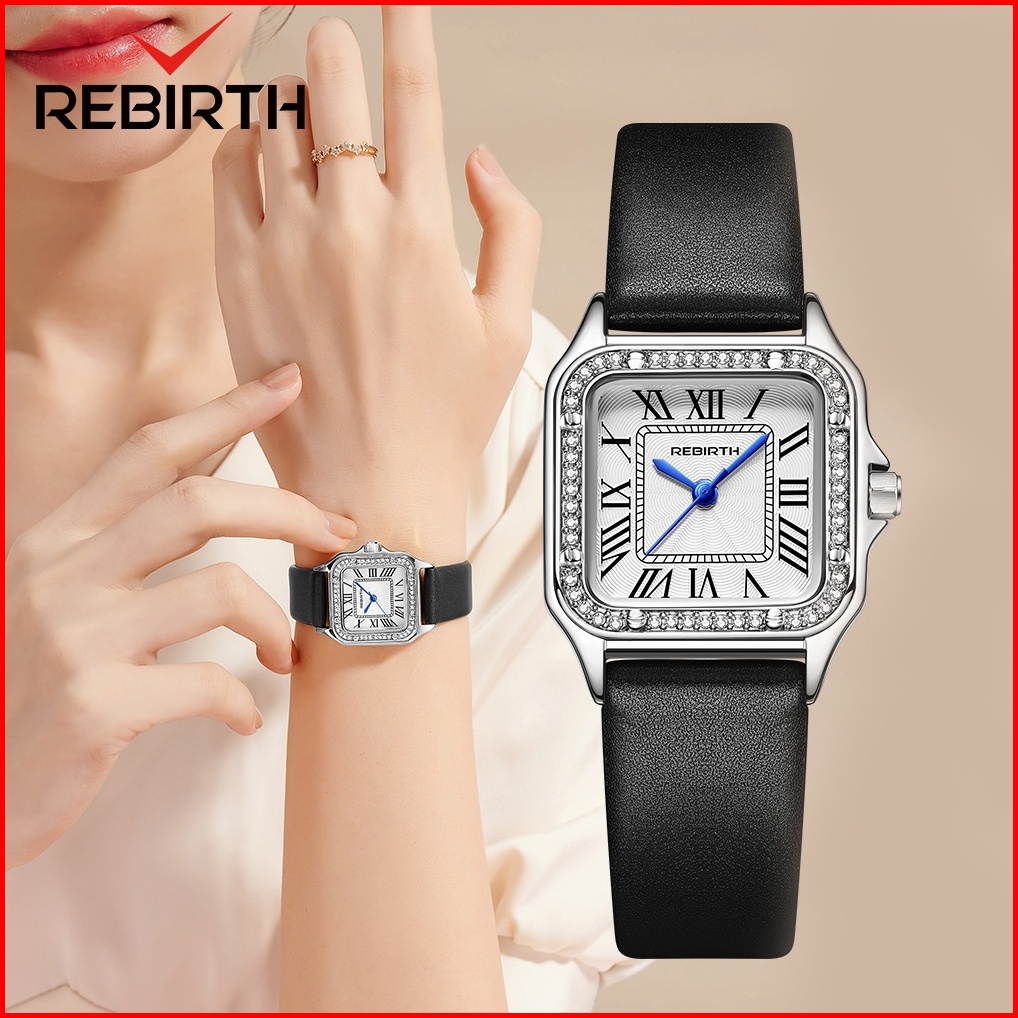 Rebirth Jam Tangan Wanita Anti Air Kuarsa Tali Kulit Jam Wanita Original Anggun Berlian Jam Tangan Cewek