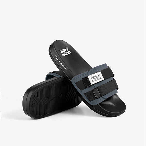 GEOFF MAX FREDDO GREY BLACK SANDALS SLIPPER SANDAL SELOP SANDAL SLIDE SANDA PRIA WANITA
