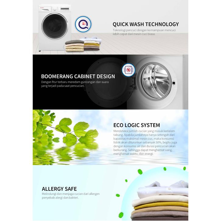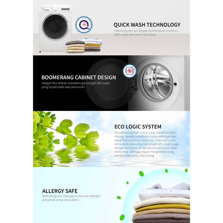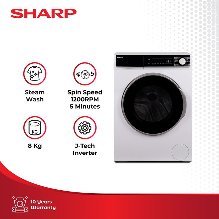 SHARP MESIN CUCI FRONT LOADING WASHING MACHINE 8KG INVERTER SERIES ES-FL1280XT 8 KG