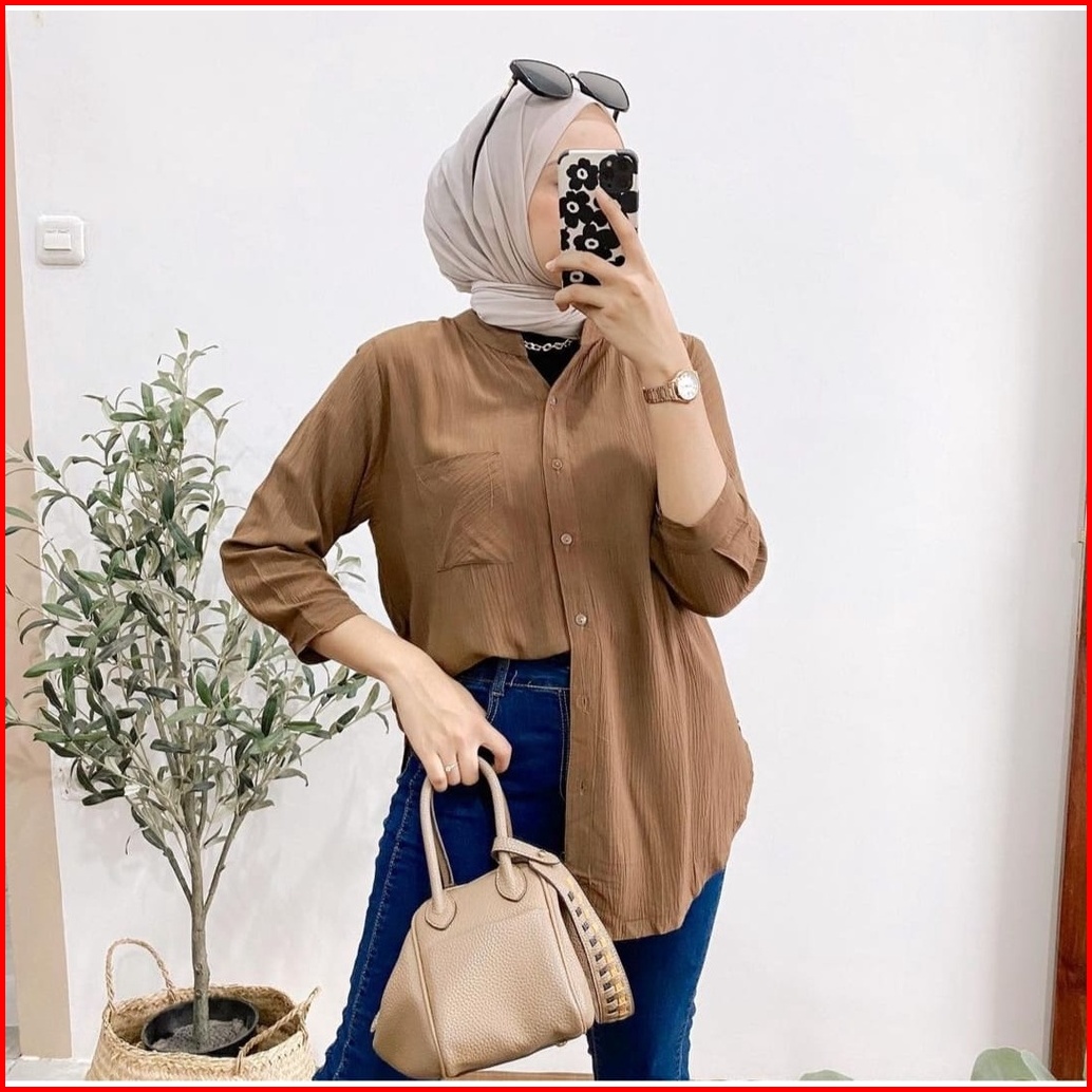 Daily Kemeja Kerja Polos Wanita Crinkle Airflow