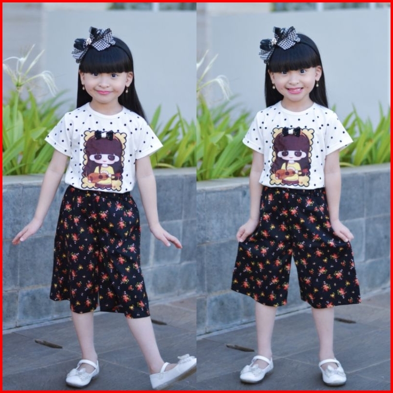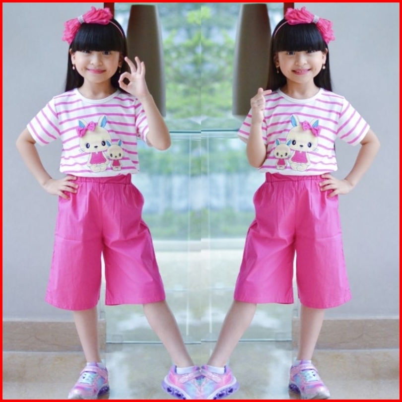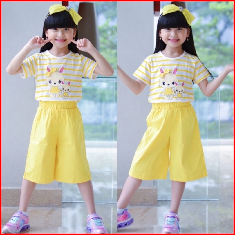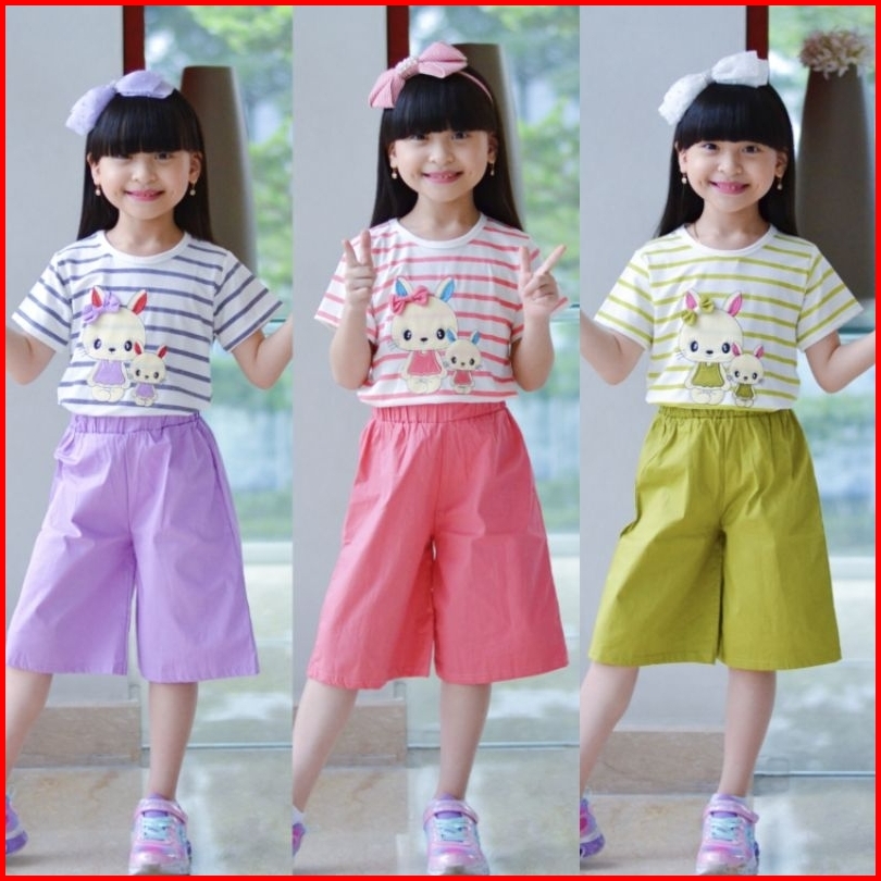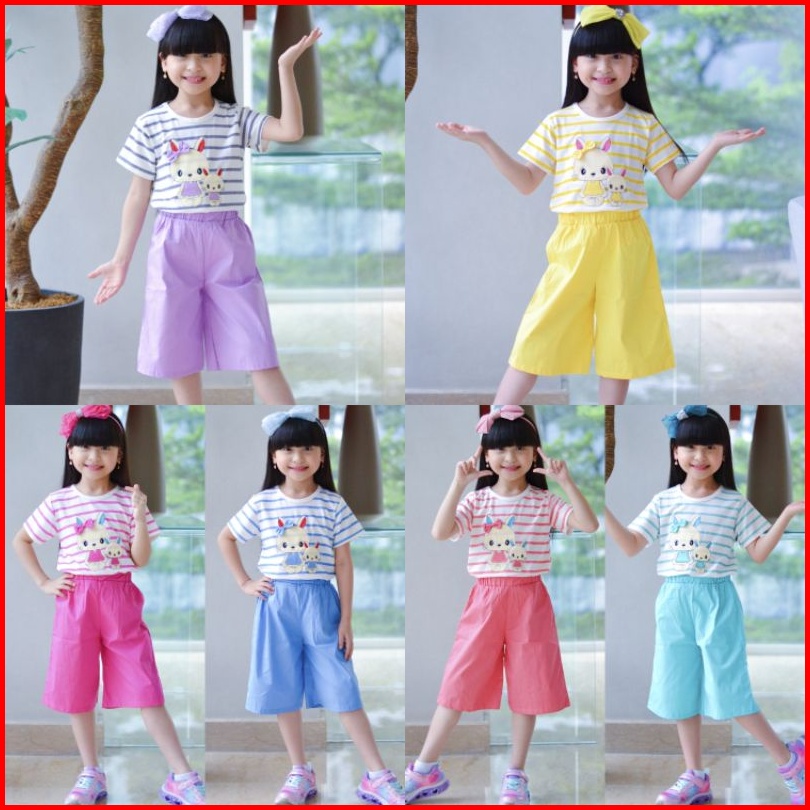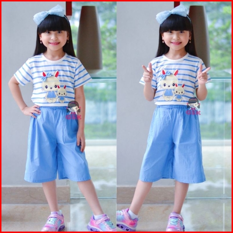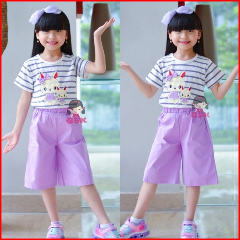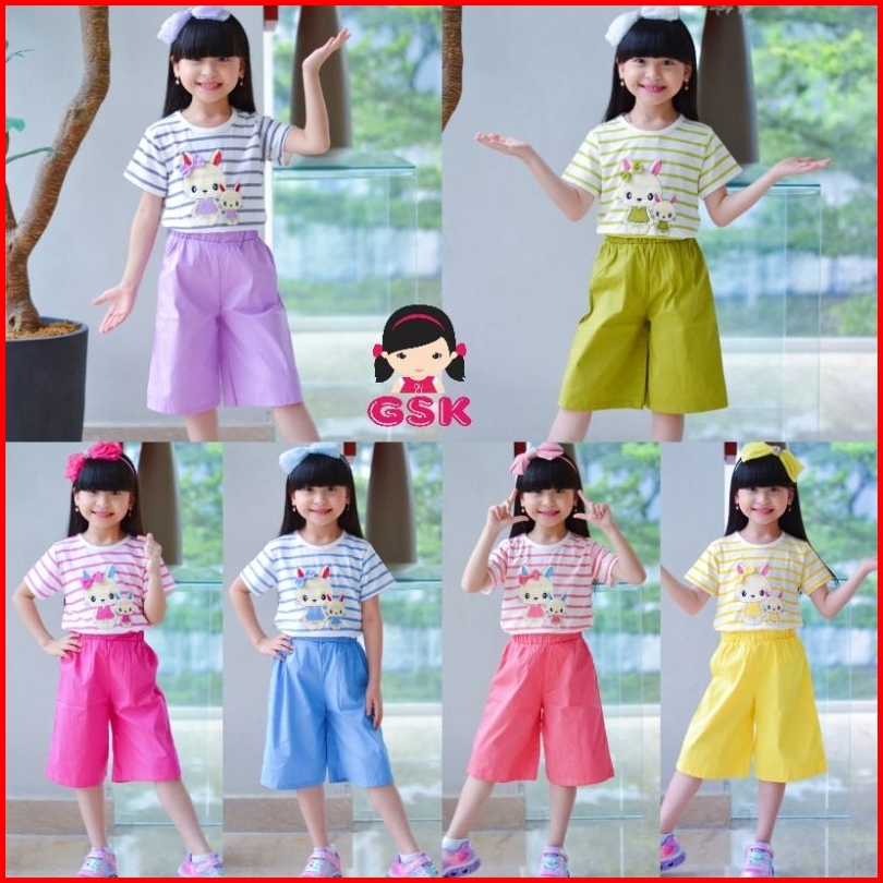 Promo 9.9 Gsk Kids Setelan Celana Kulot Atasan Salur 4-11 Tahun Terbaru Setelan Anak Perempuan Best Seller