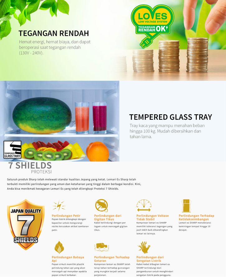 SHARP KULKAS 1 PINTU SHINE MAGNEGLAS KIREI SERIES DIRECT COOLING SYSTEM 185 184 133 LITER LEMARI ES MINI MURAH TERBARU