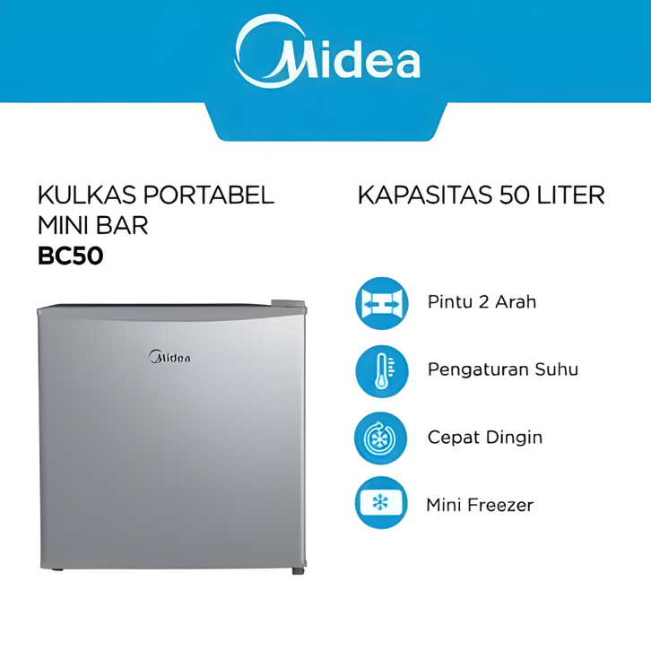 MIDEA KULKAS INVERTER MINI BAR PORTABLE 1 PINTU 2 ARAH KAPASITAS 200 50 LITER UPRIGHT FREEZER NEW PRODUCT