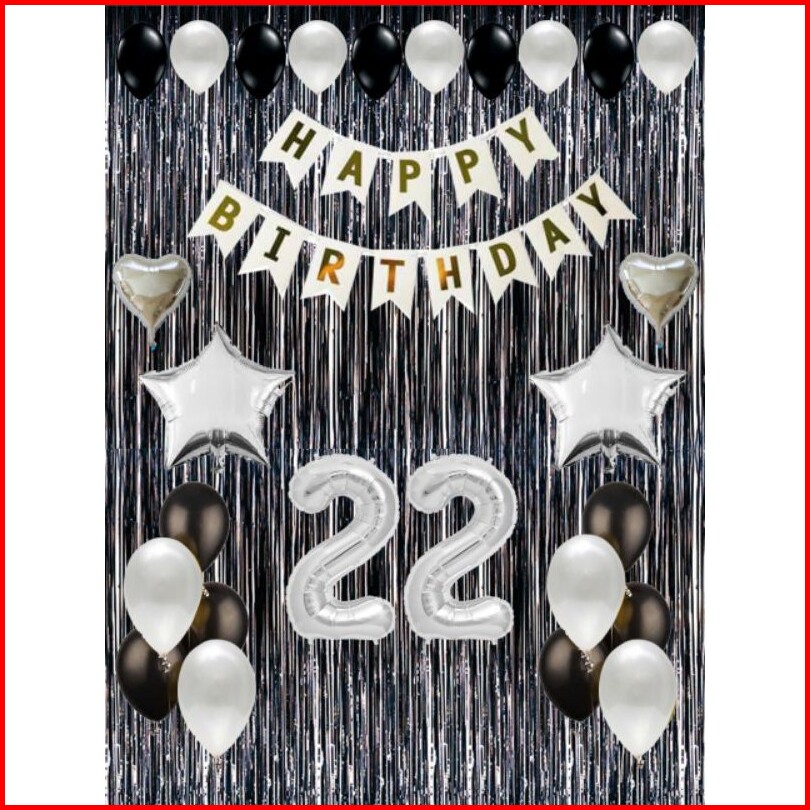 Set Paket Dekorasi Ulang Tahun Tema Black Love Star 2x2 Meter Free Angka