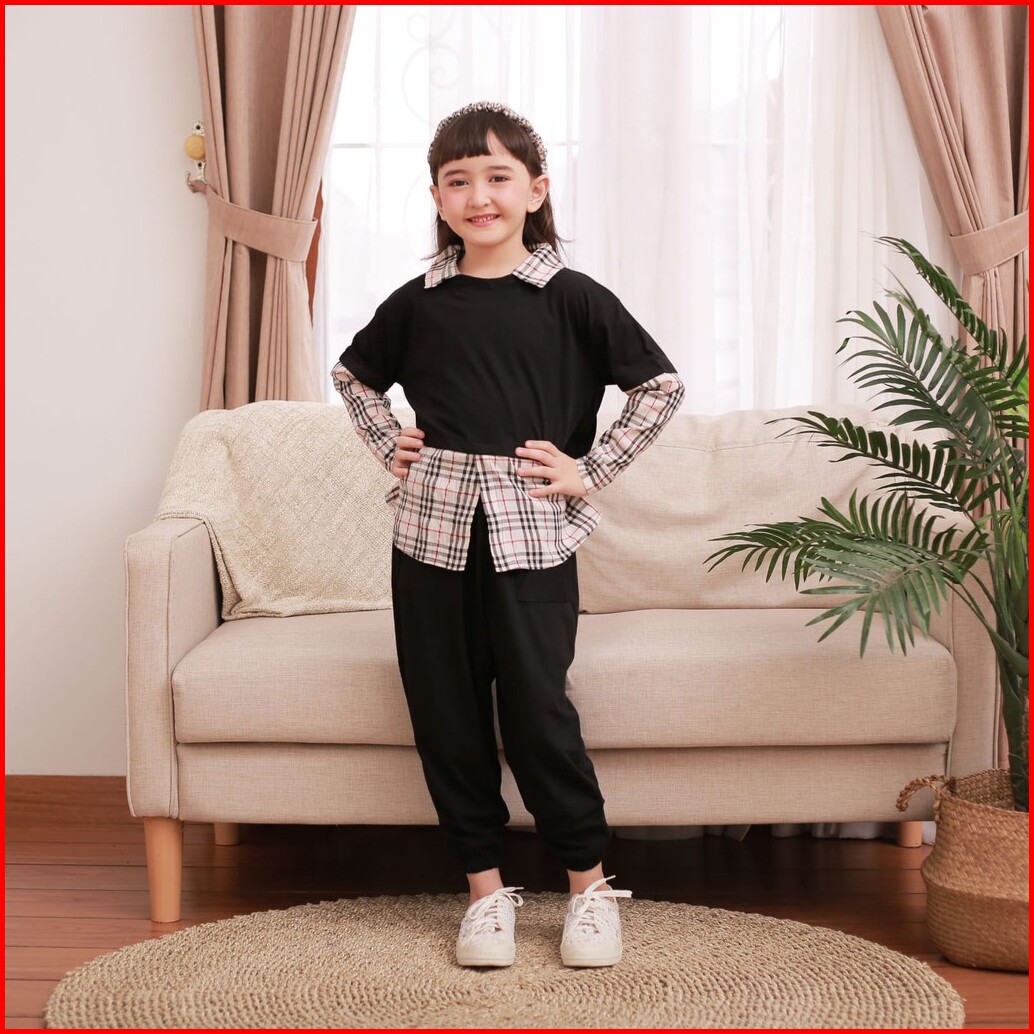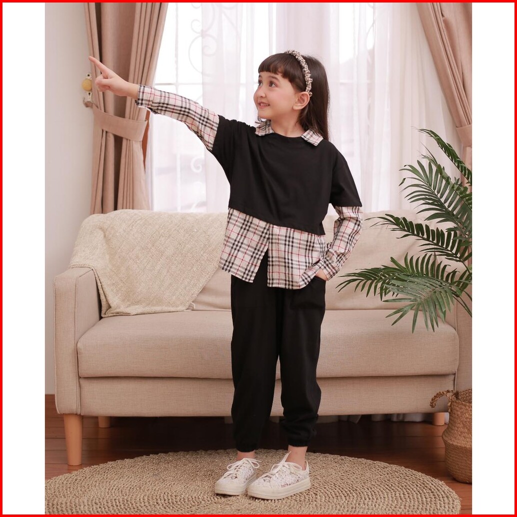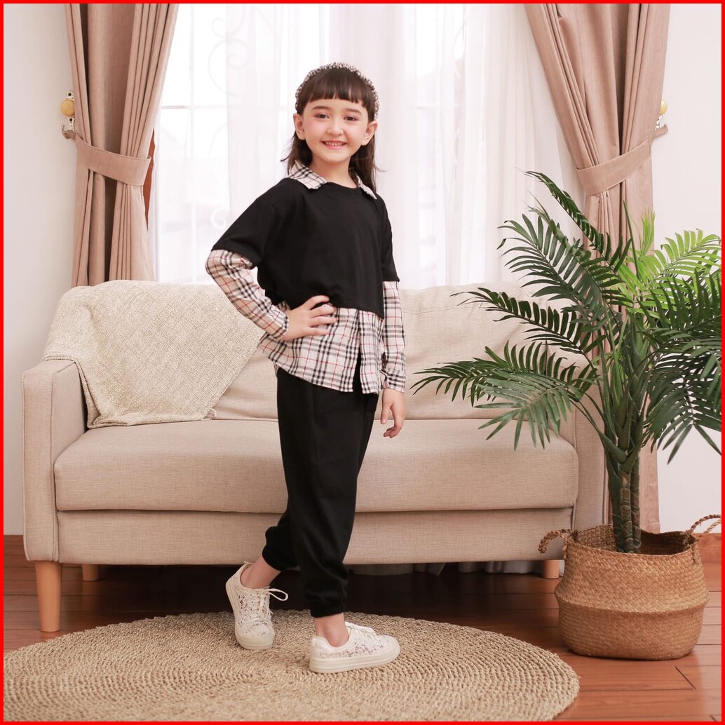 Milkan.id Setelan Anak Perempuan Motif Kotak Bahan Katun Usia 3 - 8 Tahun - Freya Set Kids