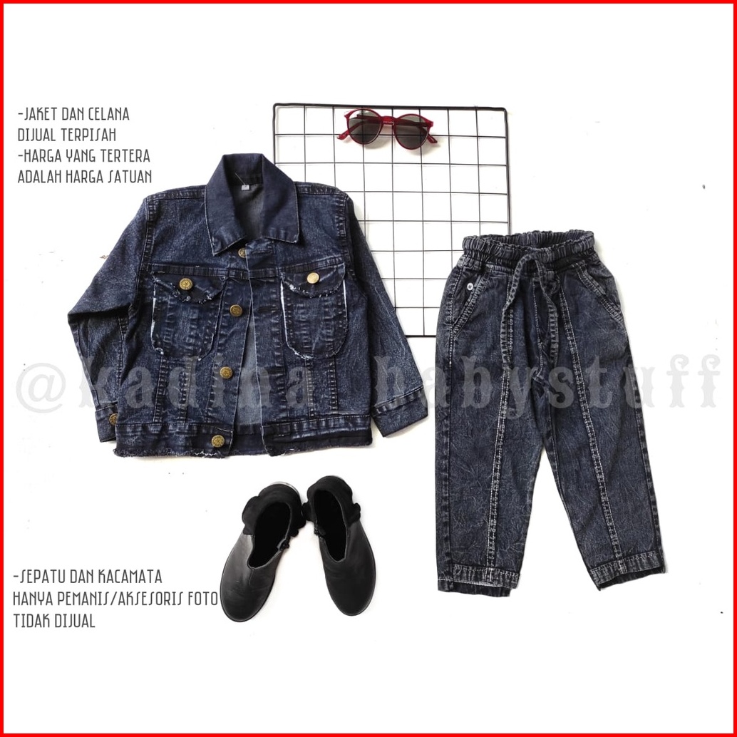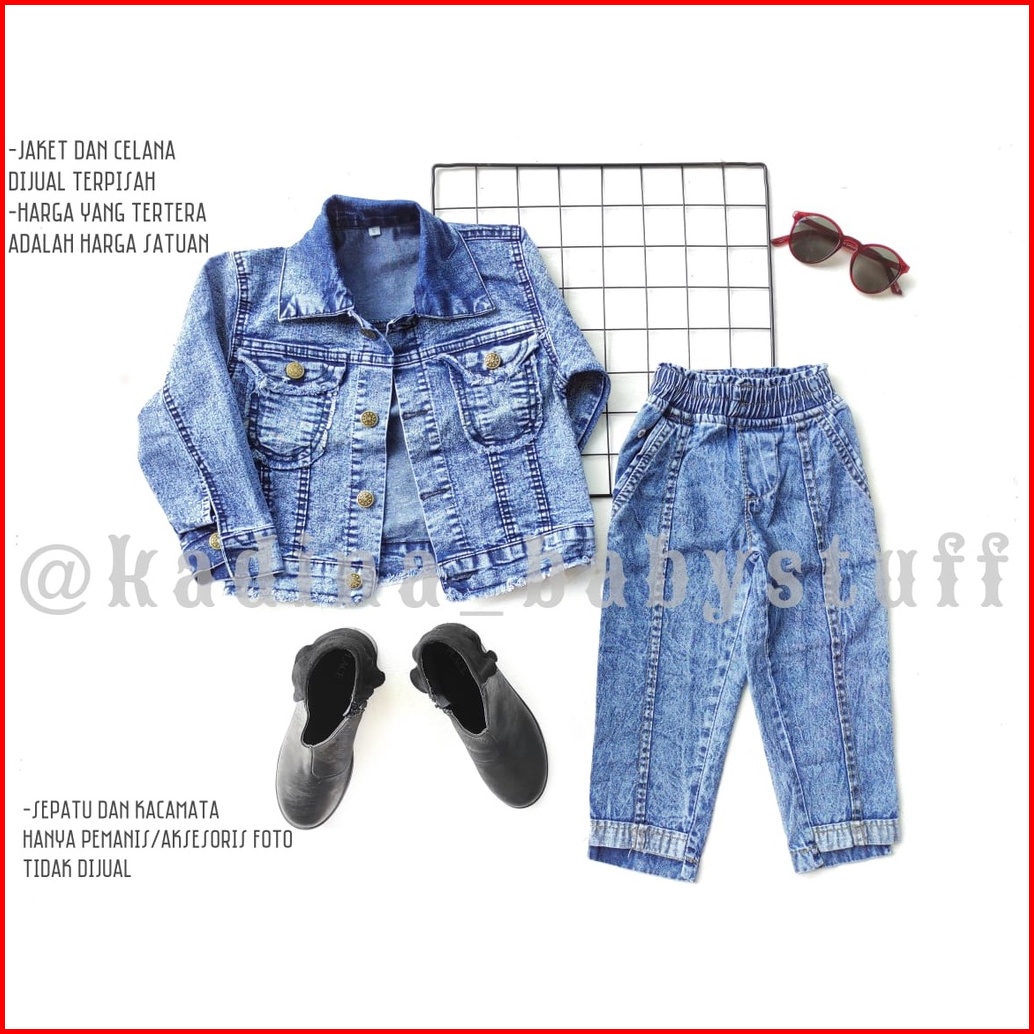 Setelan Jeans Anak Jaket Jeans Anak Snow Wash Blue Celana Baggy Pants Jeans Anak Perempuan