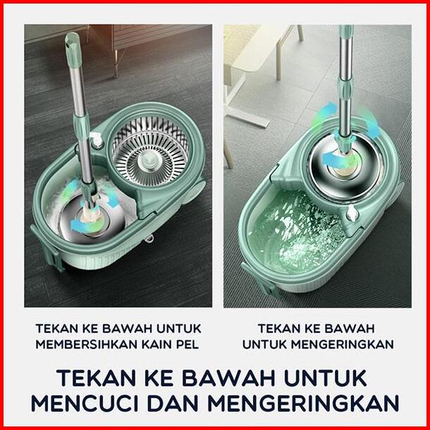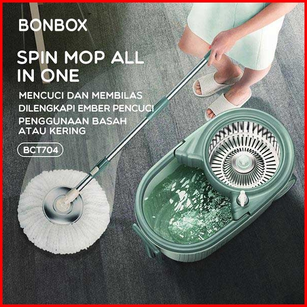 4kbonbox Alat Pel Lantai Kain Fiber Dengan Ember Spin Mop Mencuci Dan Membilas Alat Pembersih Lantai Bct704-green Bct704