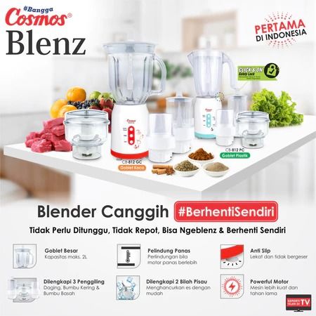 COSMOS BLENDER KACA SET CHOPPER DRY & WET MILL BLENZ CB-812 GC G 2 LITER MULTIFUNGSI #BERHENTISENDIRI
