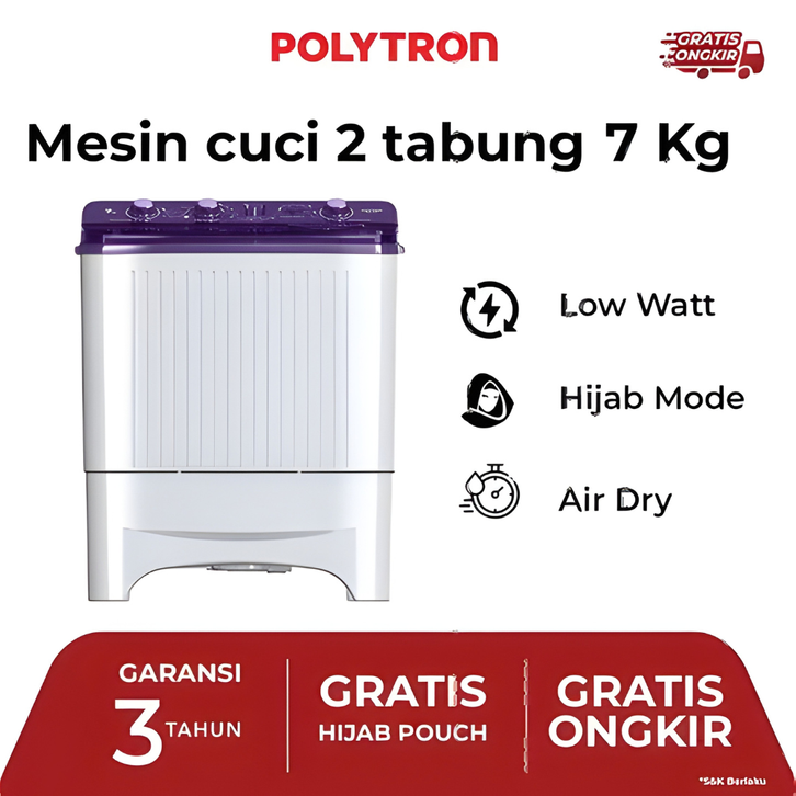 POLYTRON MESIN CUCI 2 TABUNG PRIMADONA GIANT SERIES HIJAB 7 KG PWM 7081 7KG