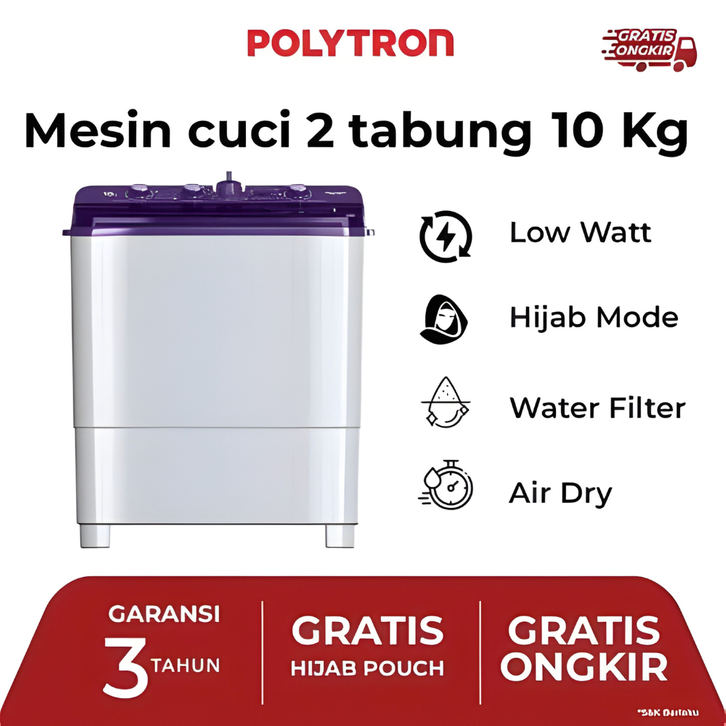 POLYTRON MESIN CUCI 2 TABUNG PRIMADONA GIANT SERIES HIJAB 10 KG PWM 1081