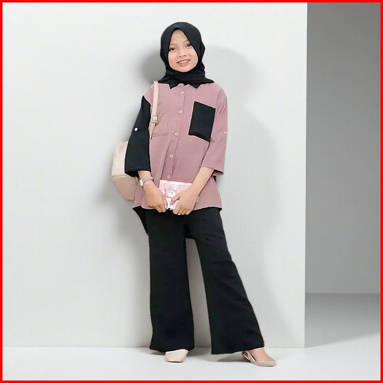 Mra - Baju Stelan Anak Fashion Free Hijab Usia 8-12 Tahun Baju Anak Perempuan Bahan Crinkle Stelan Anak Perempuan Terbar