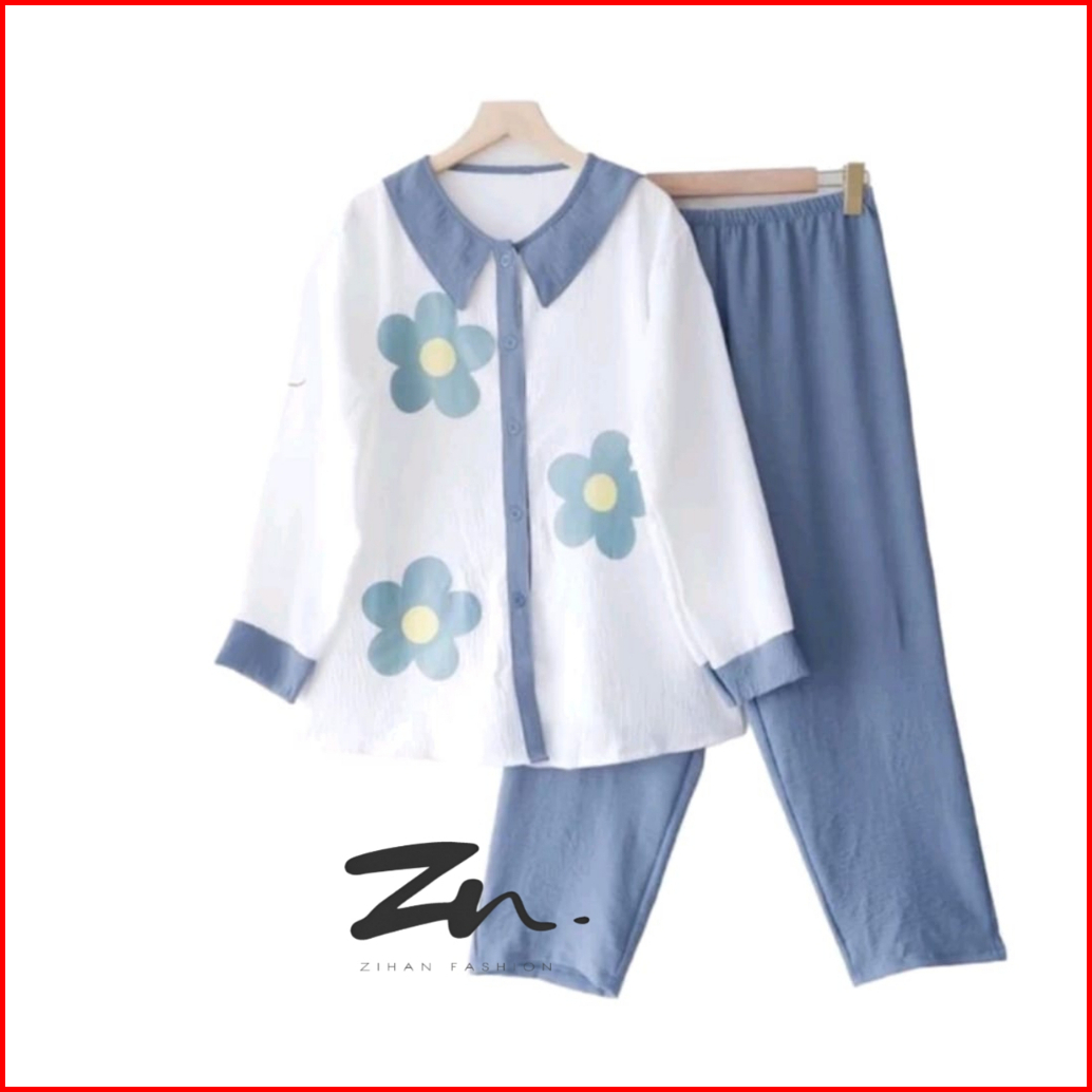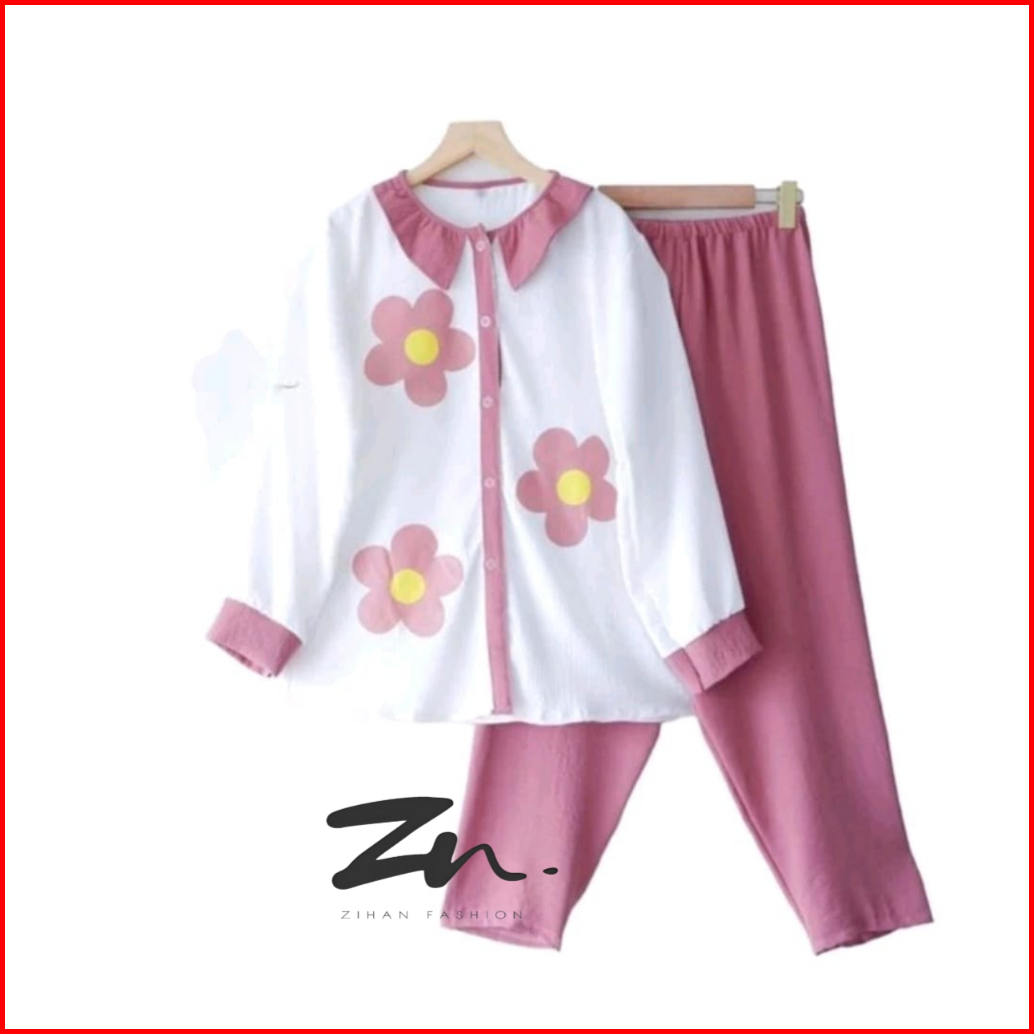Stelan Anak Perempuan Umur 3 - 11 Tahun Flower Setelan Anak Model Terbaru Bahan Cringkel Premium Harga Termurah