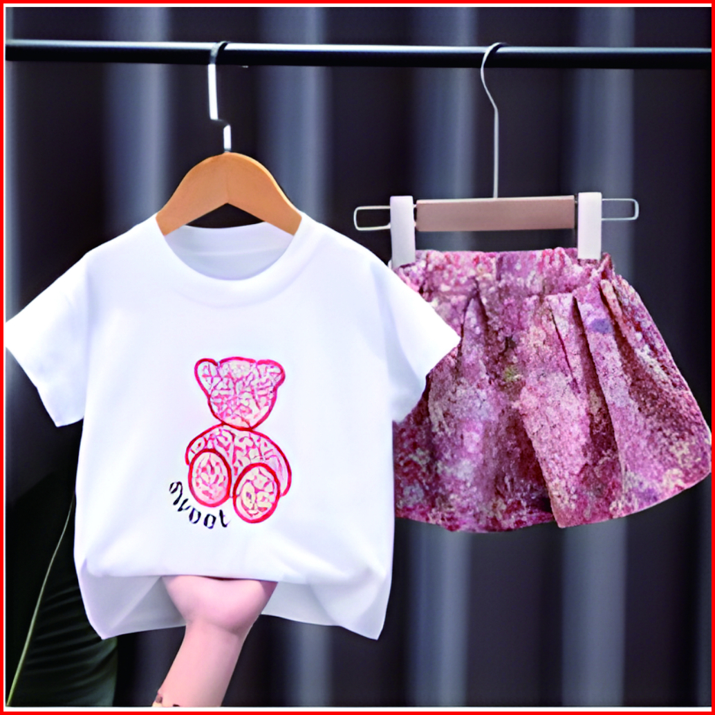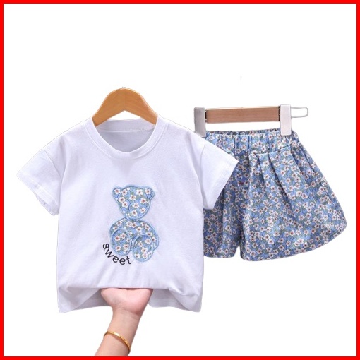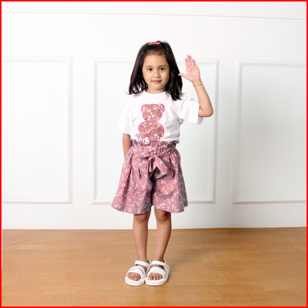 Zahra - Setelan Baju Anak Cewek Sweet Bear Bahan Katun One Set Anak Perempuan Umur 1 - 6 Tahun