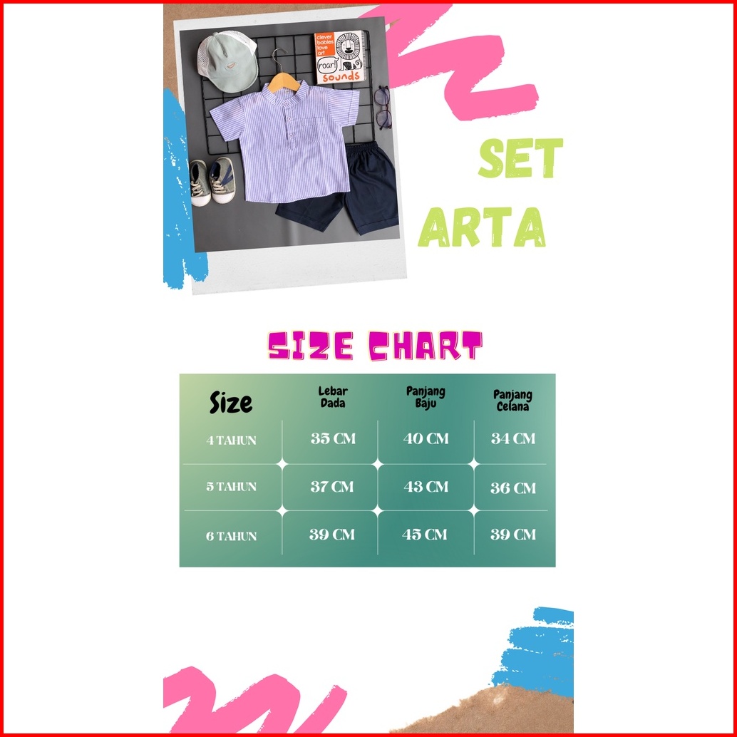 Baju Setelan Anak Salur Arta Bahan Katun Laki-laki Usia 1-6 Tahun