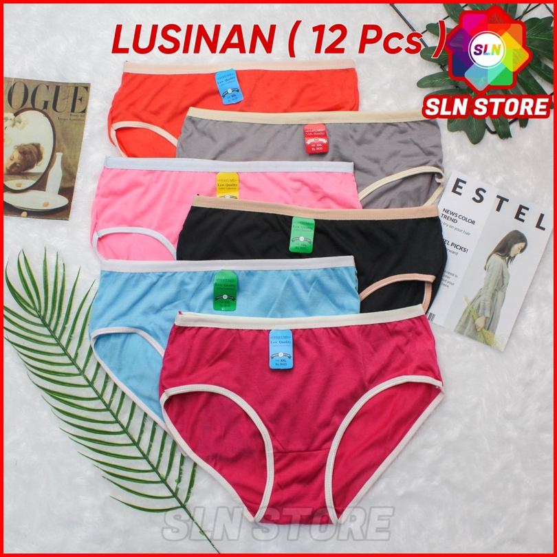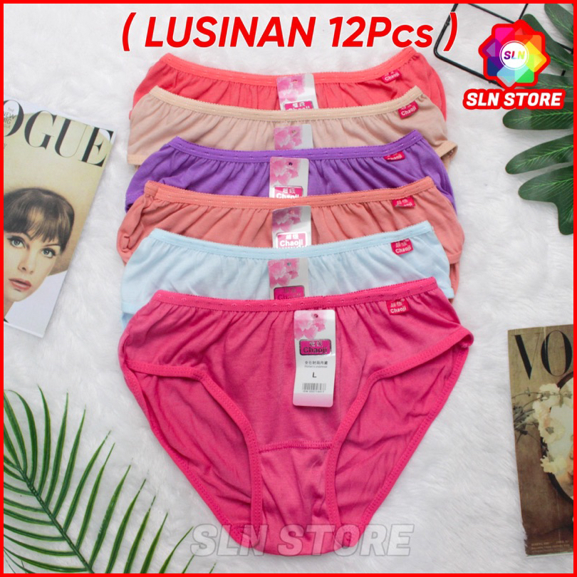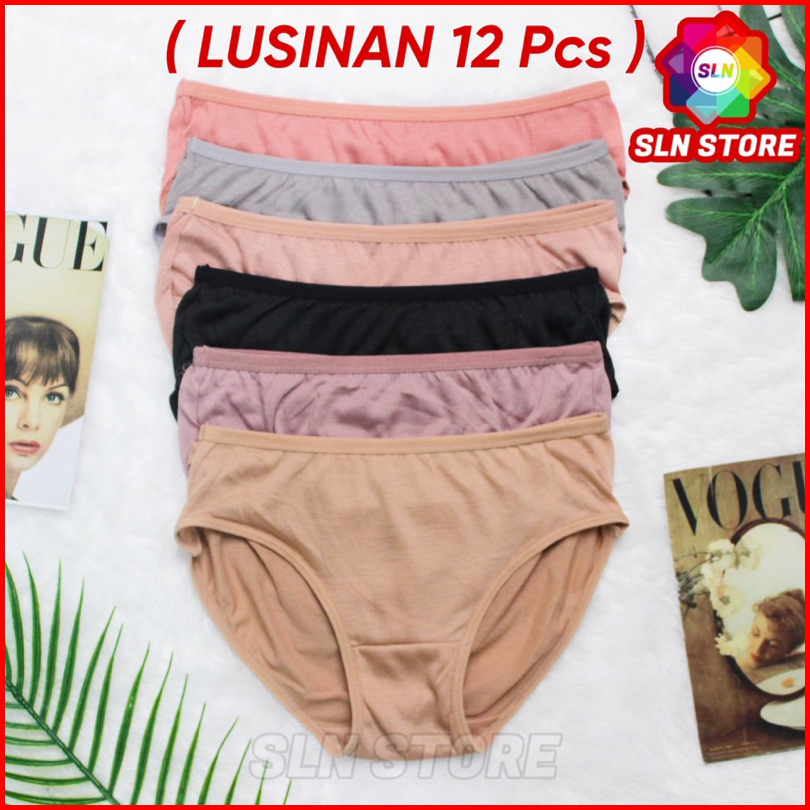 12 Pcs Celana Dalam Wanita Murah Bahan Adem Karet Elastis Cd Polos Perempuan Size M L Xl Xxl