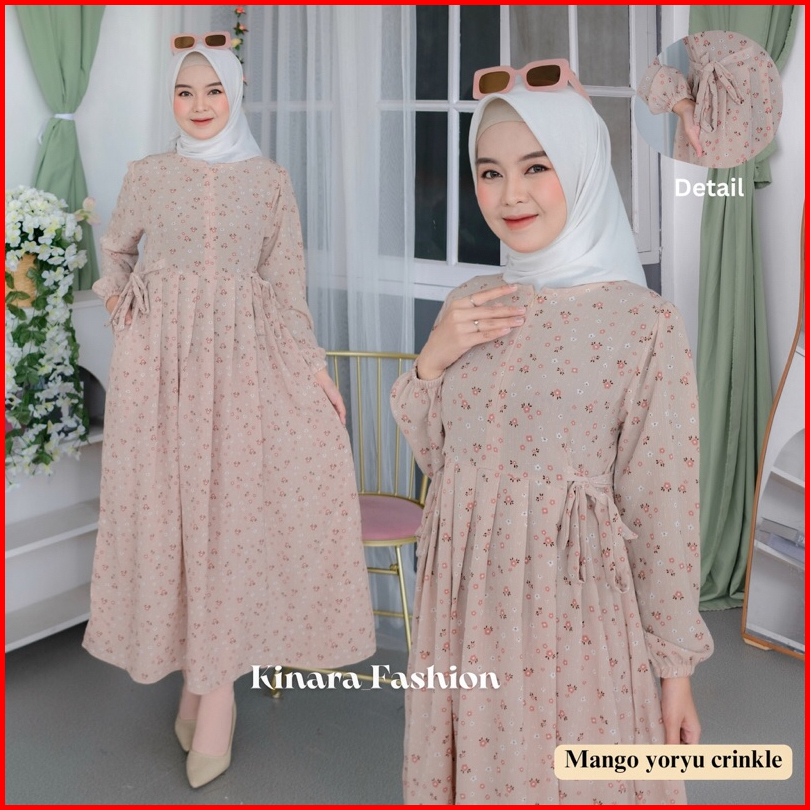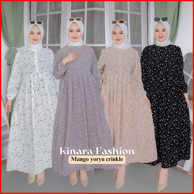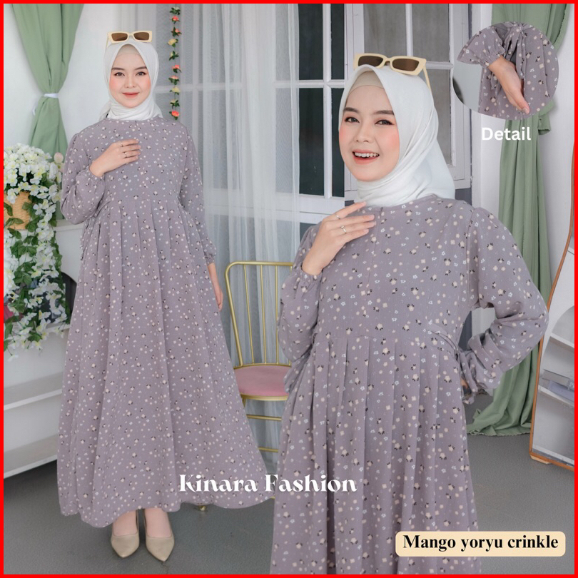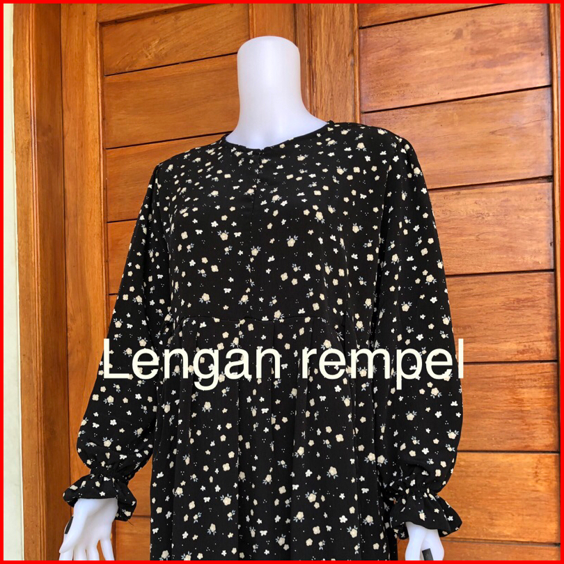 Natalia Dress Gamis Busui Bahan Yoryu Crinkle Motif Bunga Kecil Dewasa Remaja