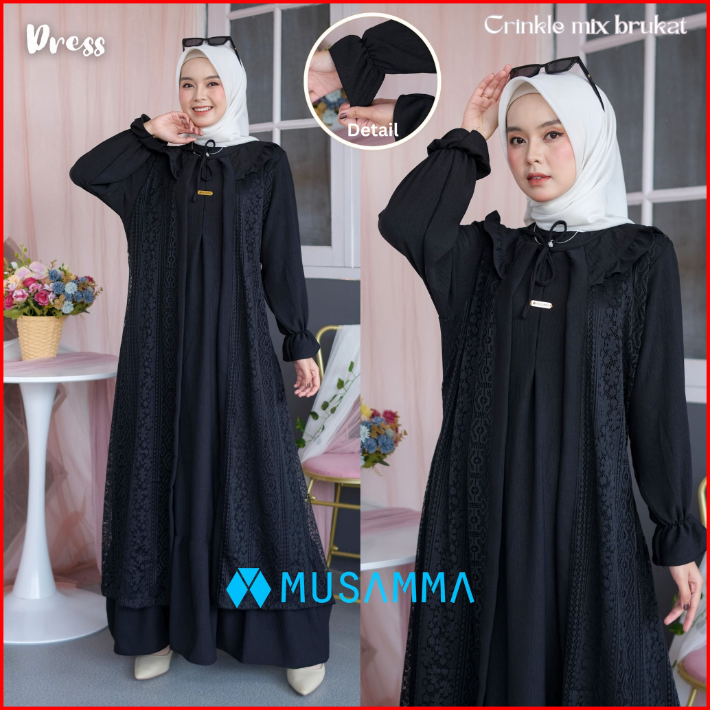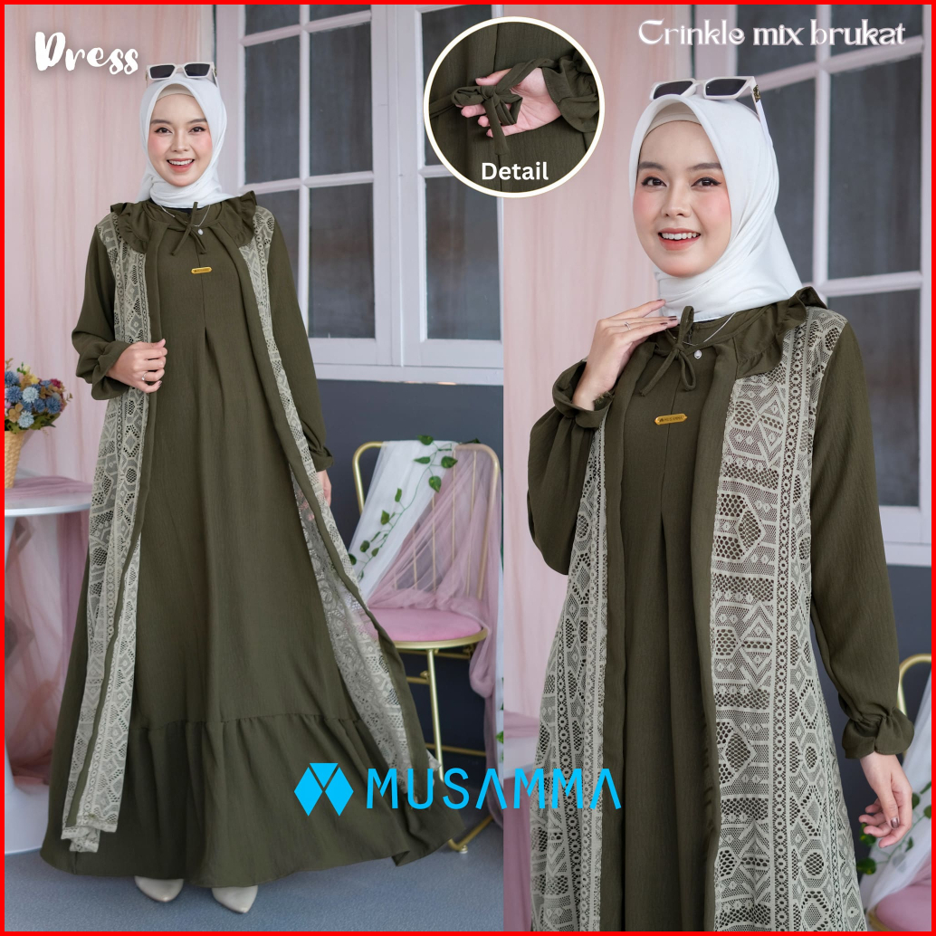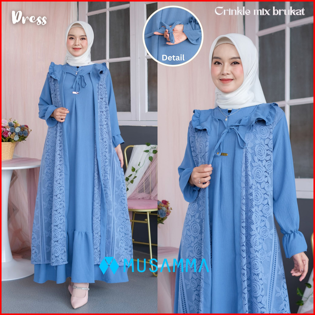 Mayra Dress - Gamis Crincle Premium Mix Brukat Malika Gamis Elegan Terbaru