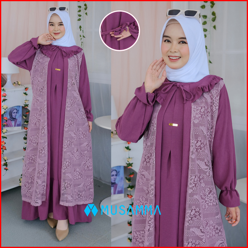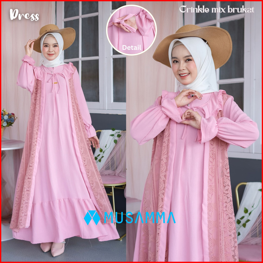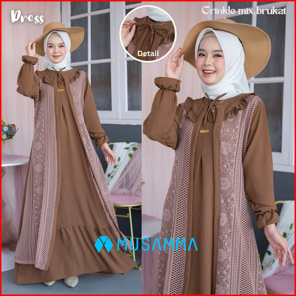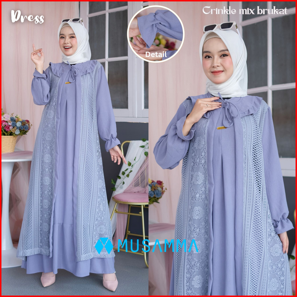 Mayra Dress - Gamis Crincle Premium Mix Brukat Malika Gamis Elegan Terbaru