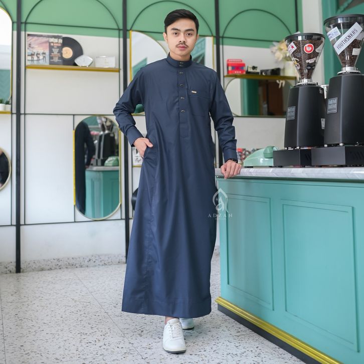 Jubah Gamis Thobe Slimfit Pria Ismail Warna Navy