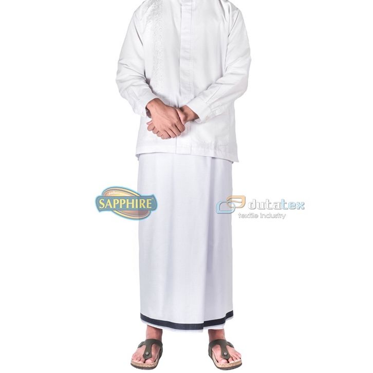 Sarung Tenun Sapphire Putih Polos Sarung Sholat Kain Sarung Pria Dewasa Original Shapire