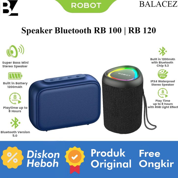 ROBOT Speaker Bluetooth Bass RGB RB120 | RB 100 - Waterproof IPX4 5.3 1200mAH TWS Portable Original - Garansi 1 Tahun