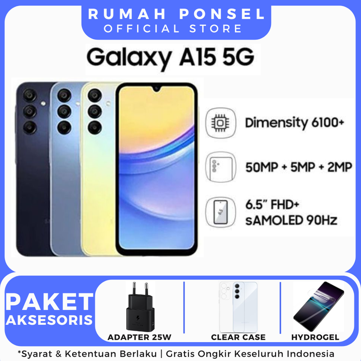 ( OFFICIAL STORE ) Samsung Galaxy A15 5G 8/256GB - 16GB Extended RAM - Rumah Ponsel Jakarta