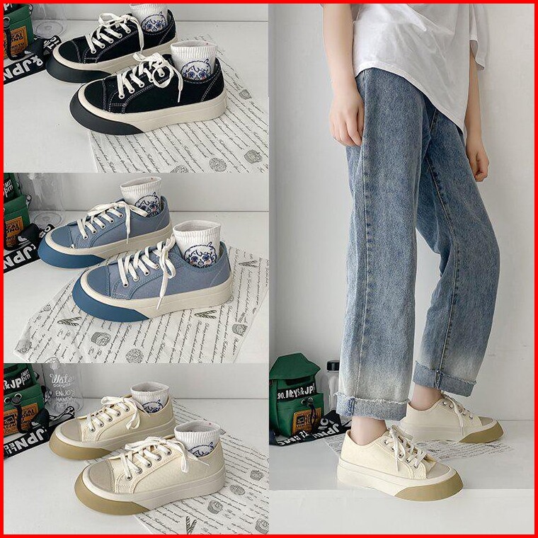 Asnk Sepatu Sneakers Wanita Korea Casual Kanvas Shoes Putih Fq-704