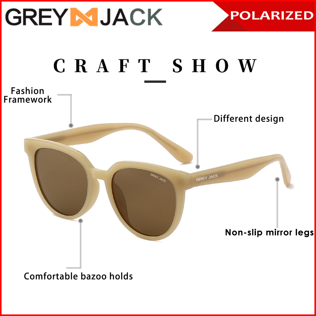 Grey Jack Kacamata Hitam Sunglasses Polarized Anti Silau Uv400 Acetate Ringan Model Oval Semi Cat Eye Fashion Wanita 582