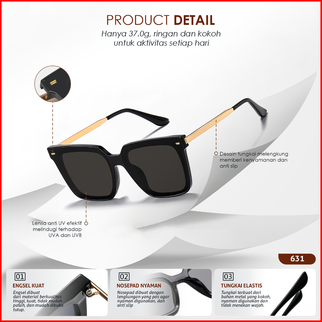Colore.in Kacamata Hitam Polarized Uv400 Sunglasses Wanita Pria 2 In 1 Anti Silau Kotak Polycarbonate Kacamata Gaya Outd