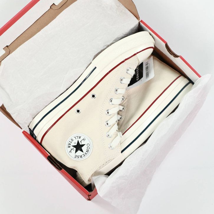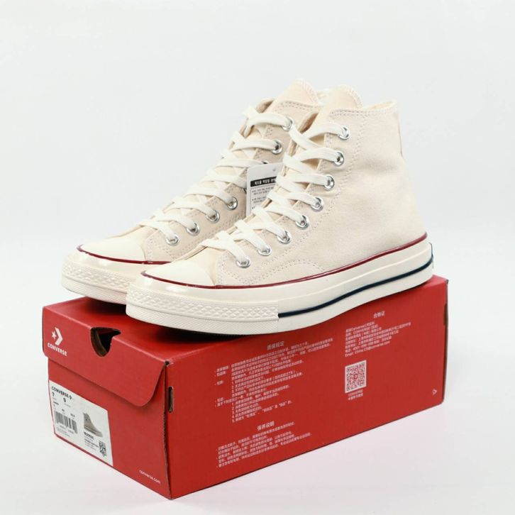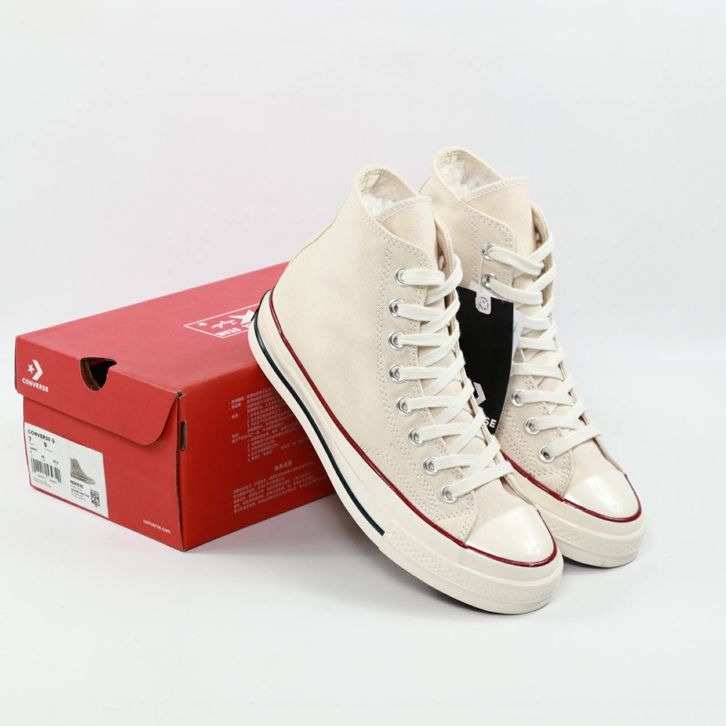 SEPATU CONVERSE ALL STAR CHUCK TAYLOR 70s HIGH PARCHMENT OFF WHITE ORIGINAL BNIB FULL TAG BARCODE BAHAN CANVAS TEXTILE