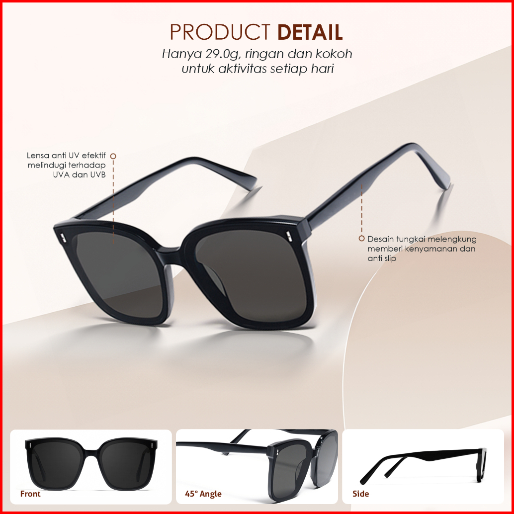 Colore.in Kacamata Hitam Lipat Polarized Uv400 Sunglasses Wanita Pria 2 In 1 Anti Silau Kotak Polycarbonate Kacamata Gay
