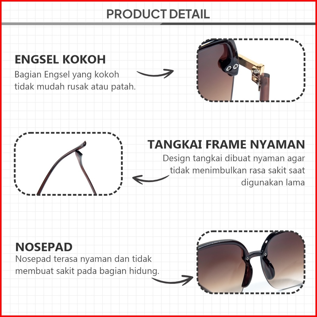 Berrybarton - Kacamata Hitam Segi Empat Modern Sunglasses Anti Uv400 Wanita 30110