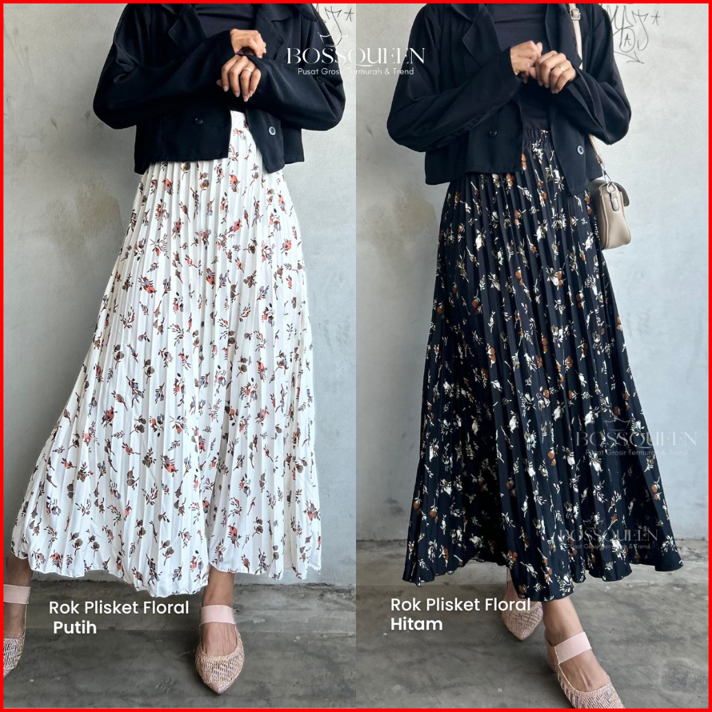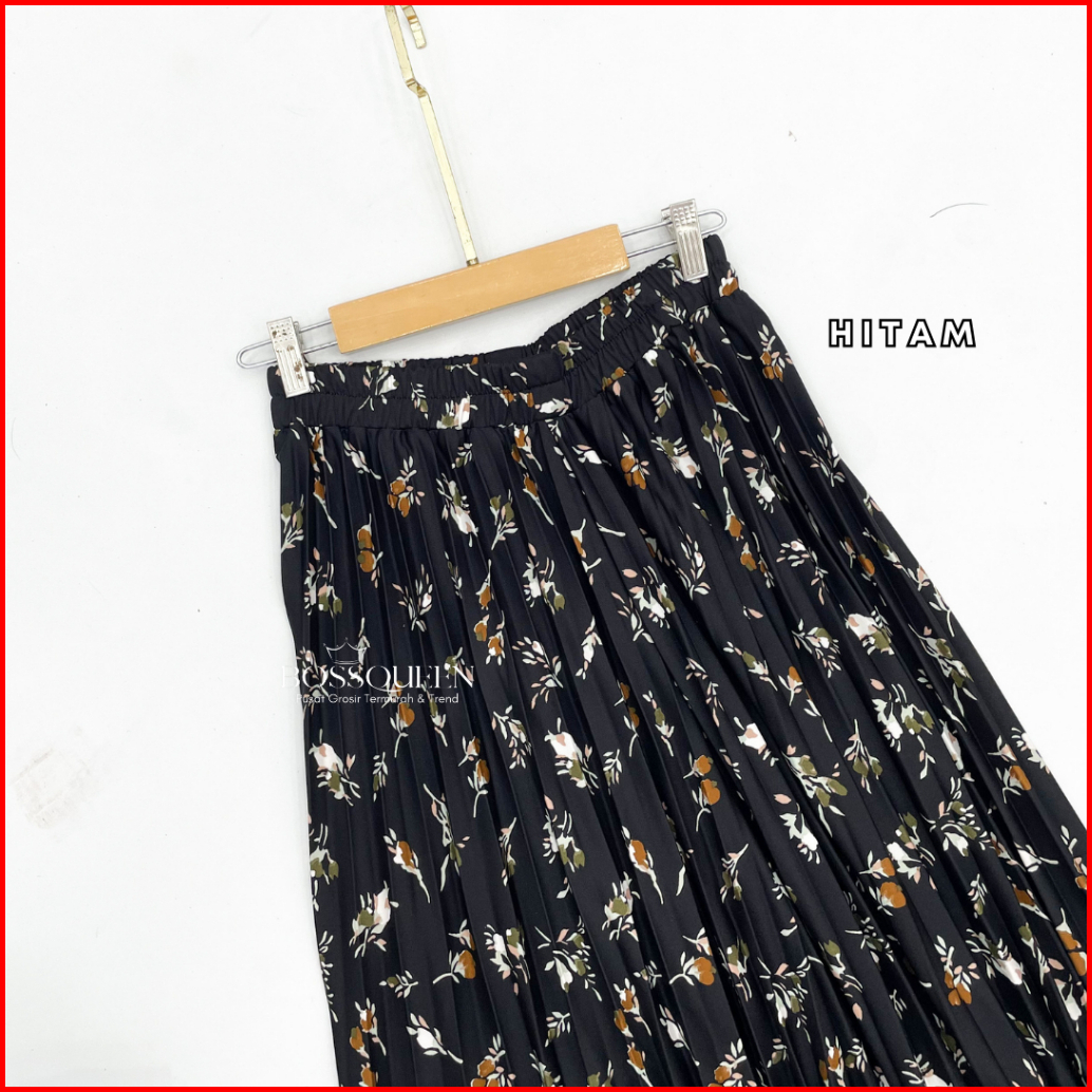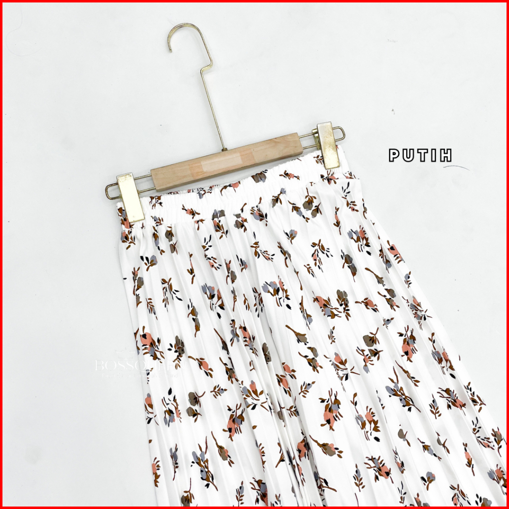 Rok Motif Bunga Floral Premium Skirt Plisket Full Motif Import Bawahan Muslim Kerja Mayung