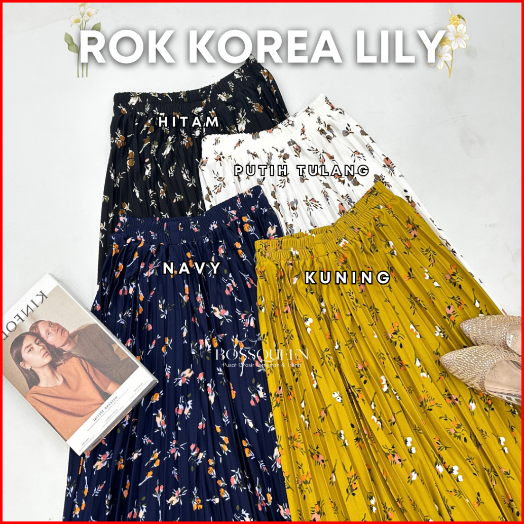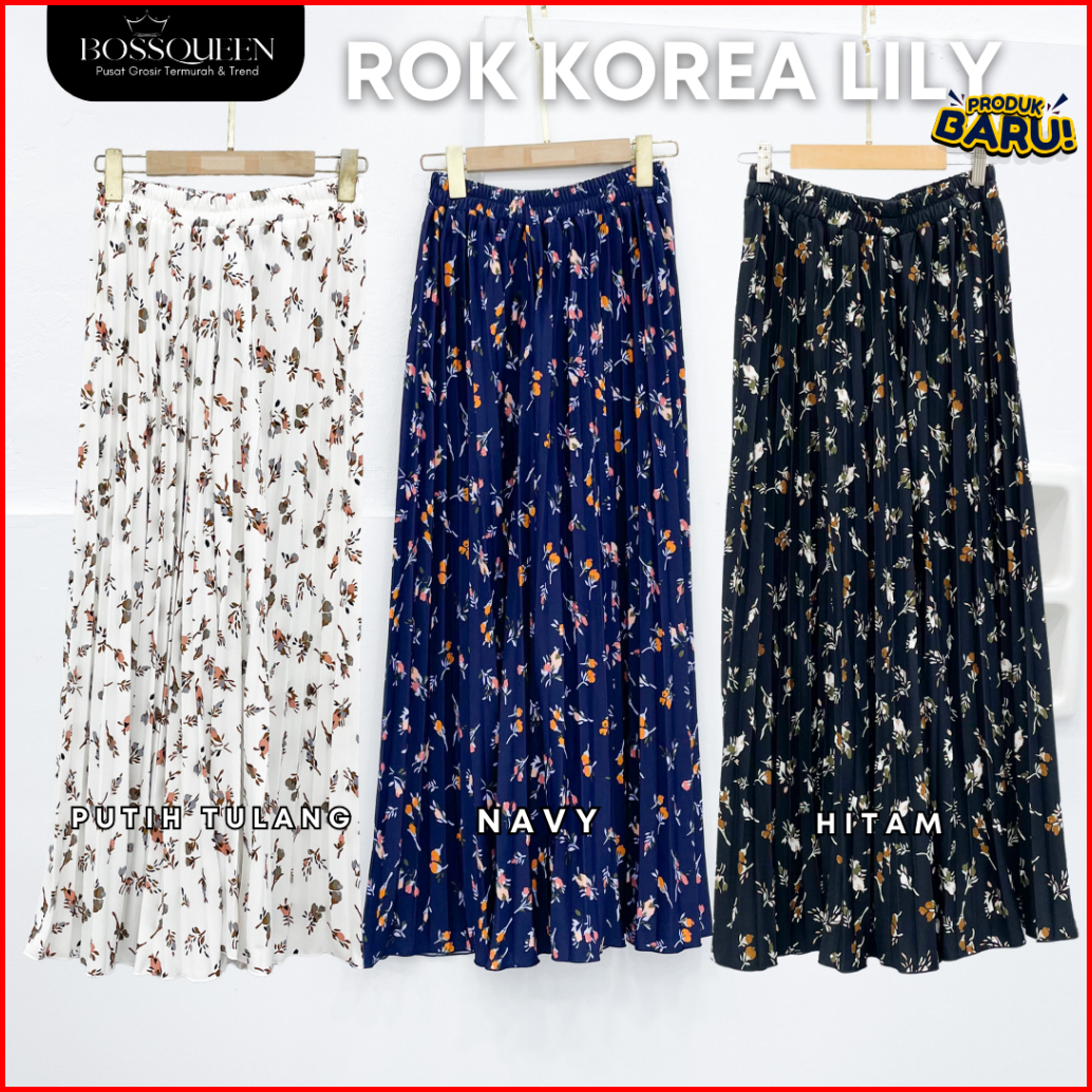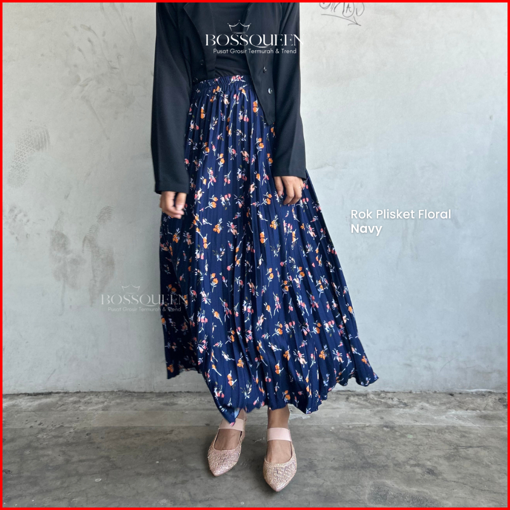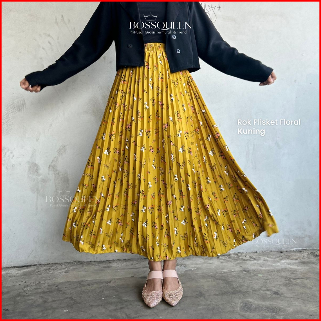 Rok Motif Bunga Floral Premium Skirt Plisket Full Motif Import Bawahan Muslim Kerja Mayung