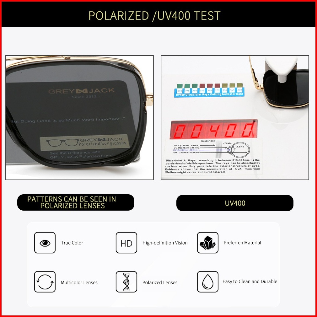 Grey Jack Kacamata Hitam Sunglasses Polarized Fashion Kotak Aviator Casual Trendy Style Terbaru Ringan Dan Stylish 1634