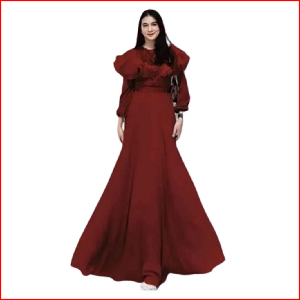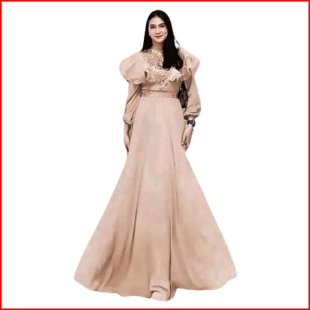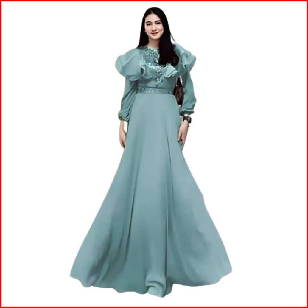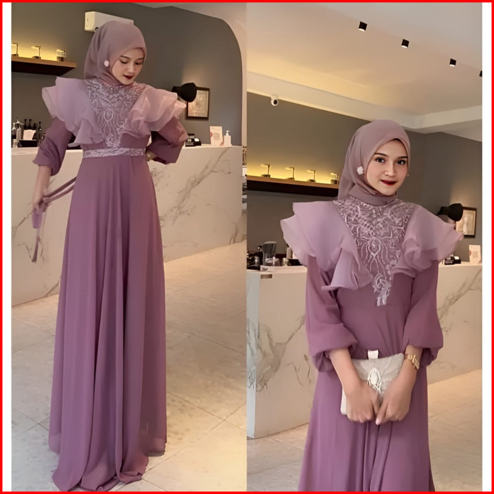 Vallinaoutfit - Meghan Maxy Dress Brokat Aksen Organza Cerutty Babydoll Gamis Wanita Muslim Pesta Kondangan Lebaran
