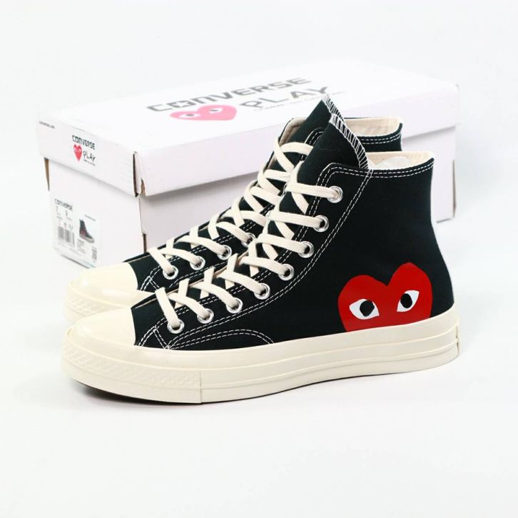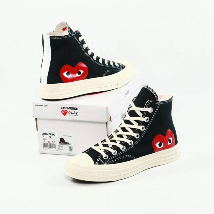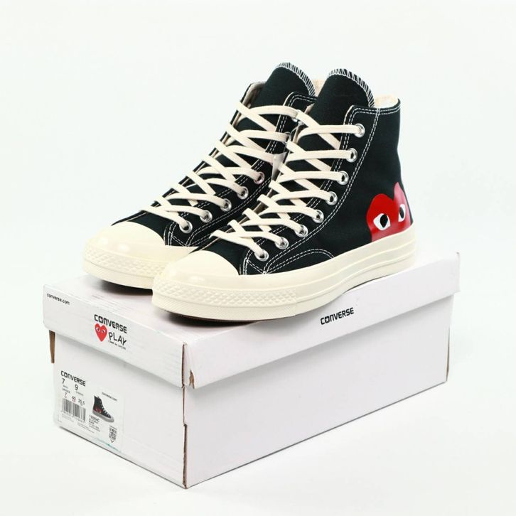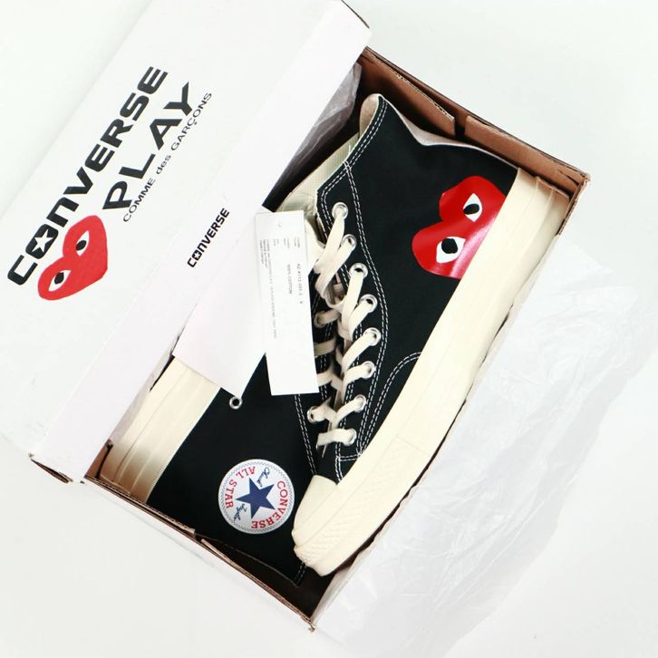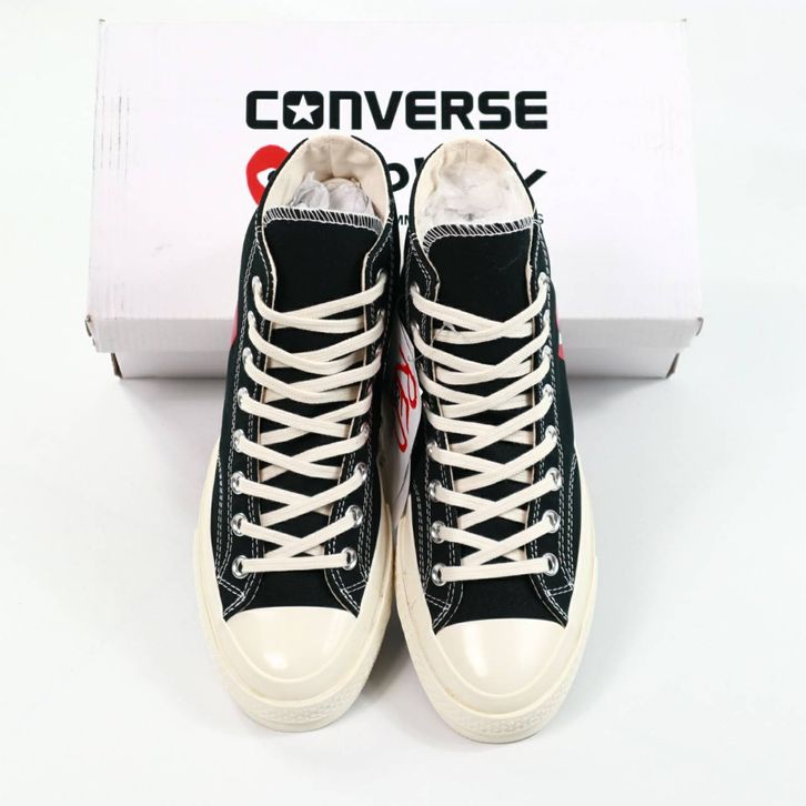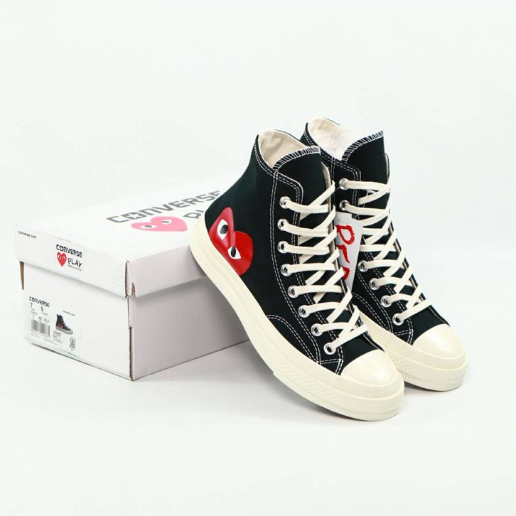 SEPATU CONVERSE CHUCK TAYLOR ALL STAR 70s HIGH X CDG BLACK WHITE ORIGINAL BNIB FULL TAG BARCODE BAHAN CANVAS