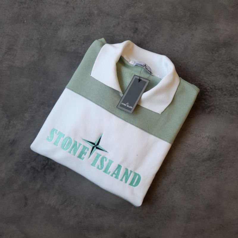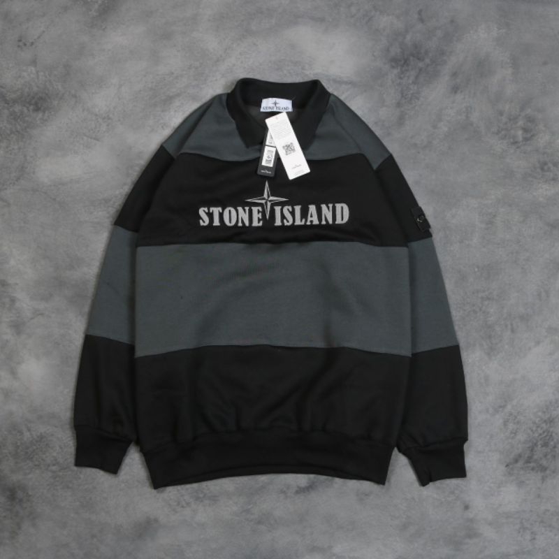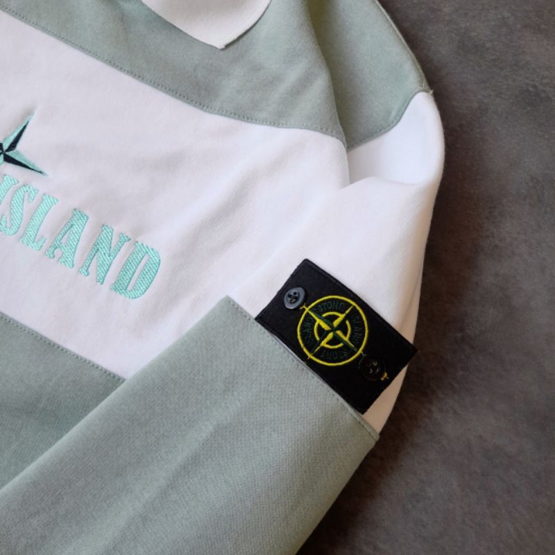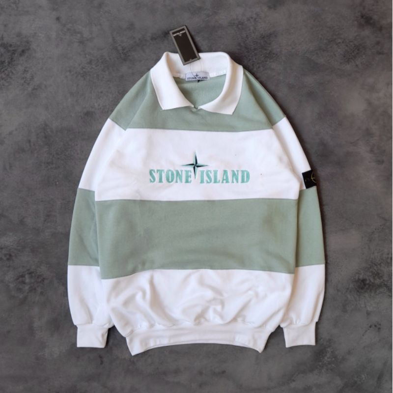 SWEATER STONE ISLAND CREWNECK JAKET HOODIE PRIA WANITA CLASSIC STRIPE OLIVE HITAM FULLTAG & LABEL RUGBY