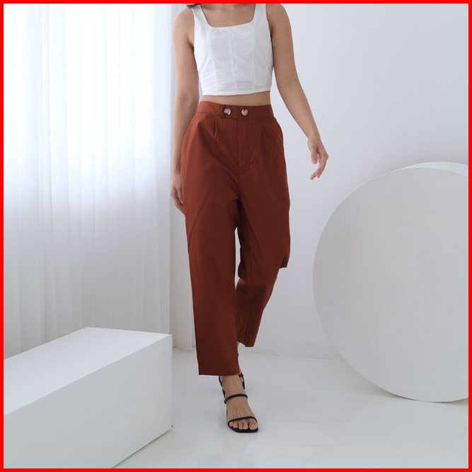 Cottonbells Celana Premium Gaby Button Plaid Tied Pants Pm - C 2544