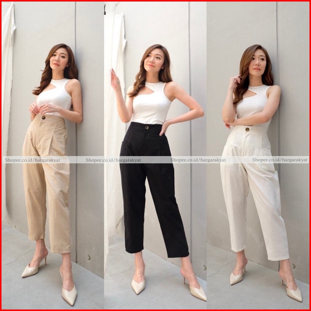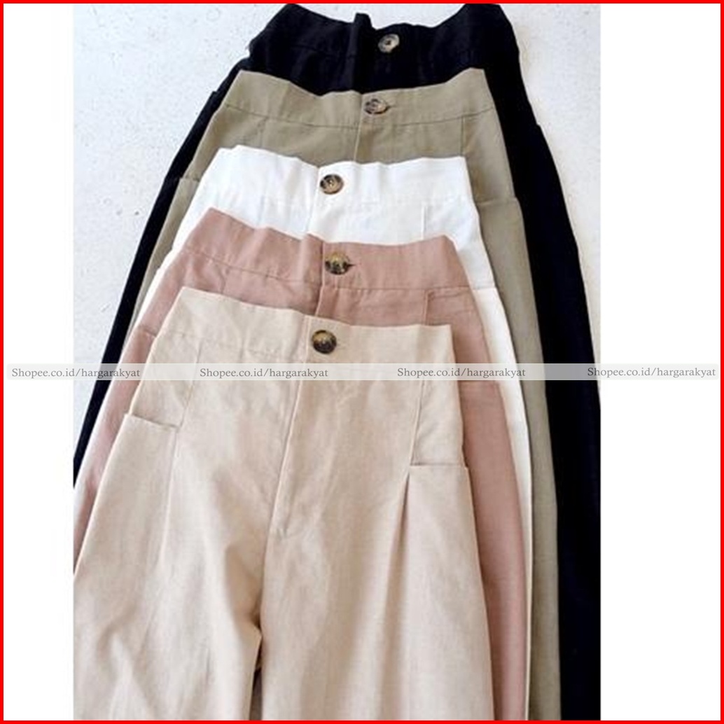 Celana Linen Highwaist Double Pocket - Celana Baggy Linen Pants 2276 - Linen Saku