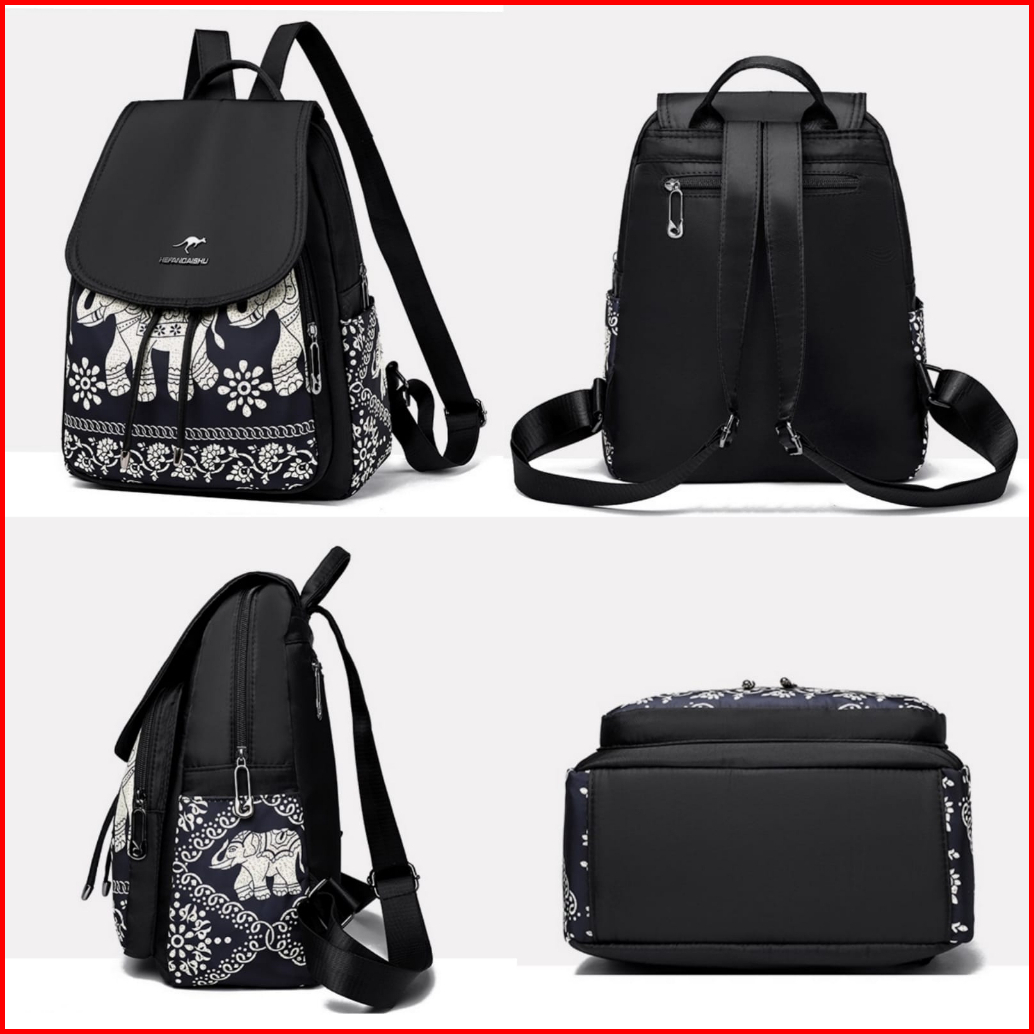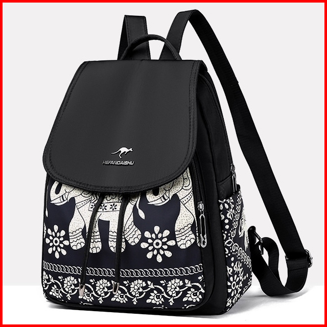 Tas Ransel Wanita Anti Air Premium Motif Gajah Hitam Solara Ta883b5 Cewek Korea Backpack Murah Sekolah Gendong Punggung