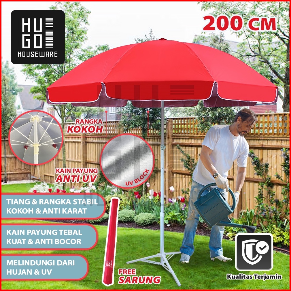 Hugo Payung Jualan 200 Cm Payung Tenda Taman Pantai Cafe Bazar Lapak Dengan Sarung