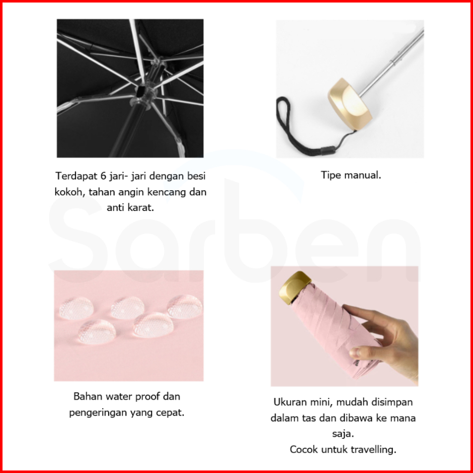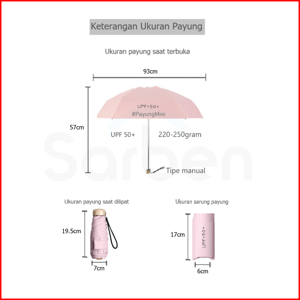 Payung Lipat- Mini - Anti Uv 50 Matahari - Payung Lipat Manual