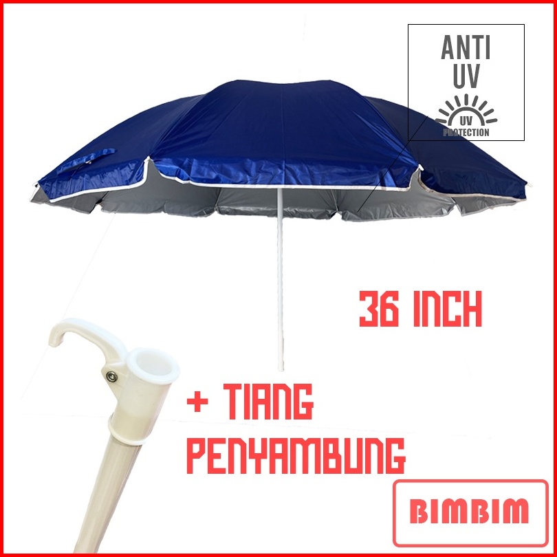 Payung Pantai 36 Inch Payung Tenda Jualan Cafe Bazaar 180 Cm Anti Uv Lapis Dalam Silver